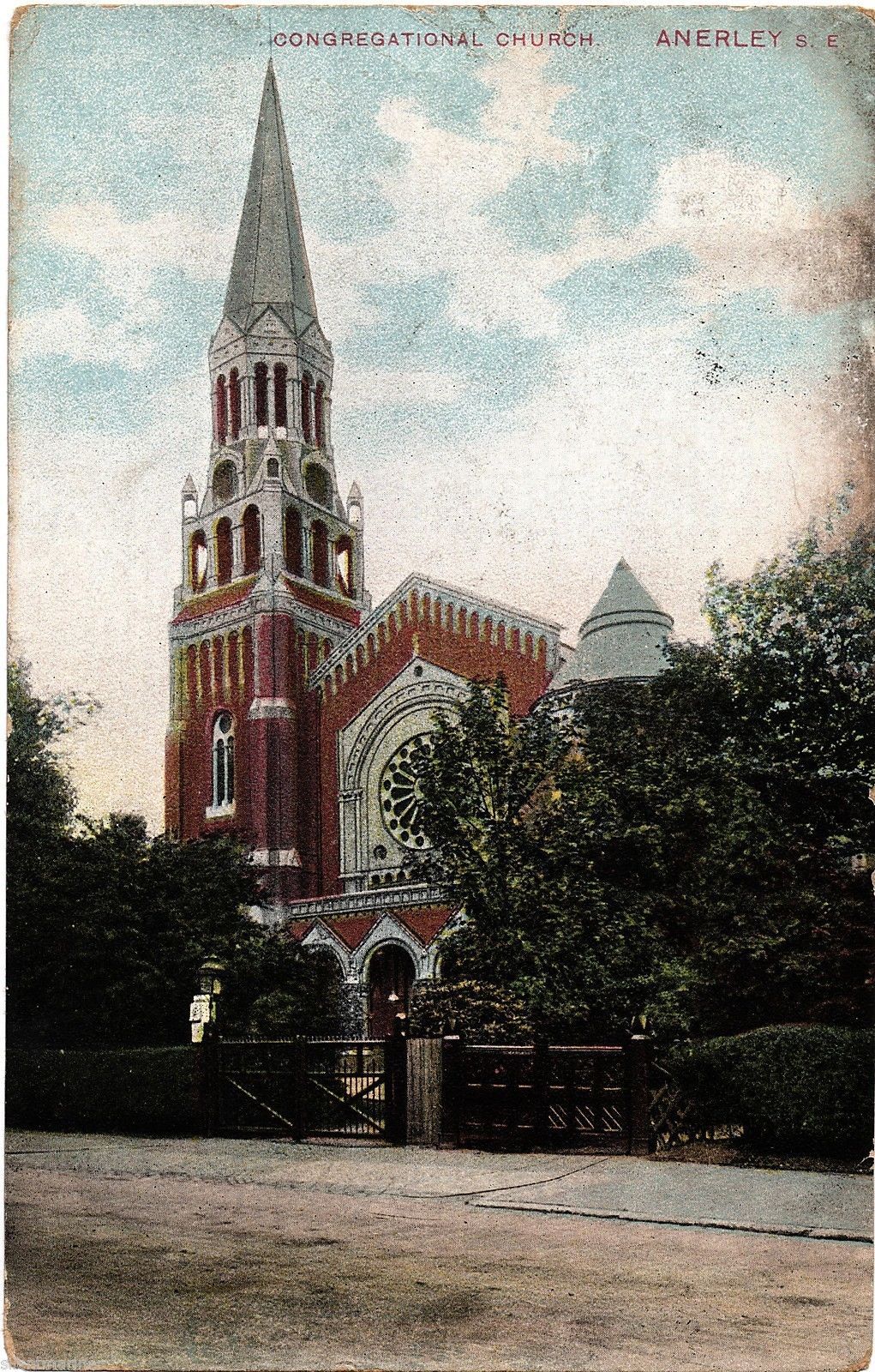 The Congregational church, in Anerley road, erected in 1874-5, built of red brick, with white brick and Bath stone dressings, in the Romanesque style, and had a tower with an octagonal spire 150 feet high: the total cost was £12,500, and there was sittings for 1,300 persons.