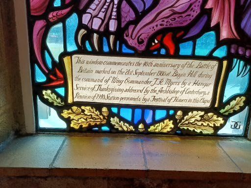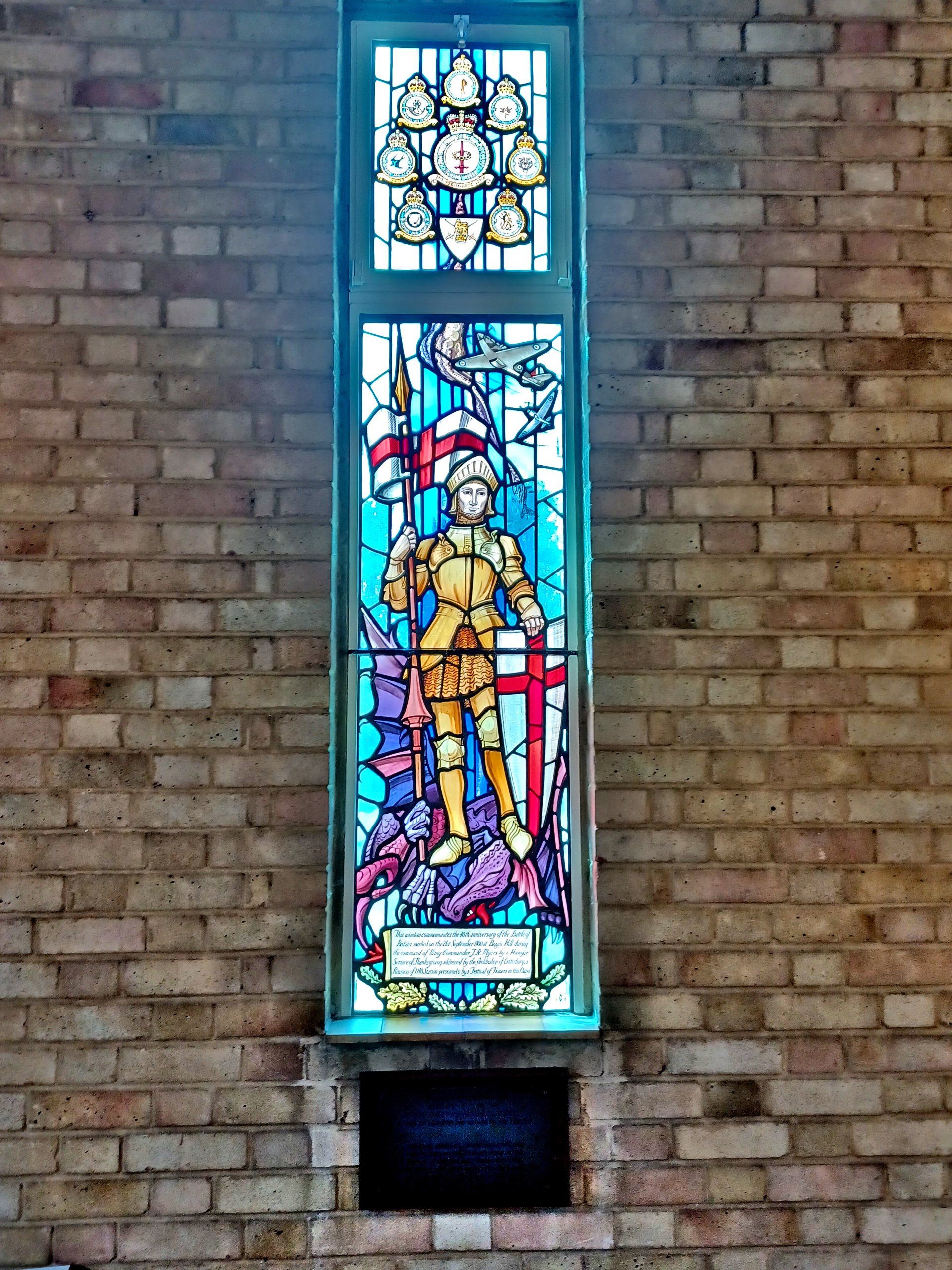One of the stained glass windows, this one representing St. George, others marking the individual squadrons who flew from Biggin Hill.
