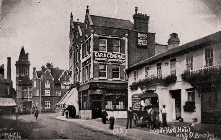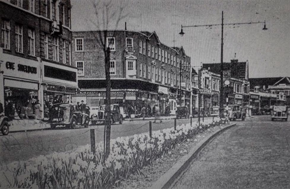 Curwoods, looking north, the Whate Hart is hidden away behind the garage sign.