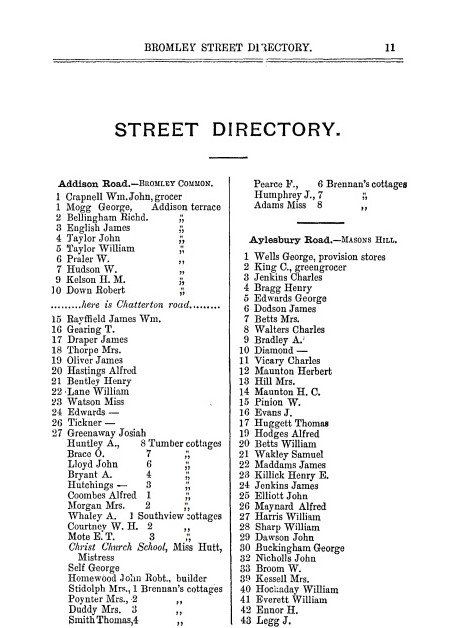 homas Smith Head 1875 36 Male Married Dustman Snodland, Kent, England 44Addison Road, Bromley, Kent