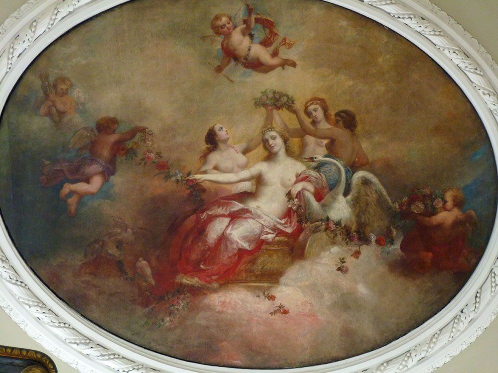 The hallway gives access to various parts of the building including the main staircase, above which is this beautiful painting.