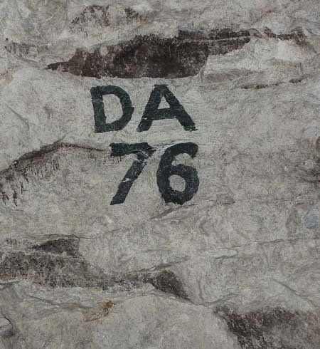 Round many parts of the Caves, small painted codes indicate the position of a "pitch" where, typically, a 3 tier bunk would be placed. With the sloping walls of the Caves and often bunks on either side, movement through the passageways could be very restricted.