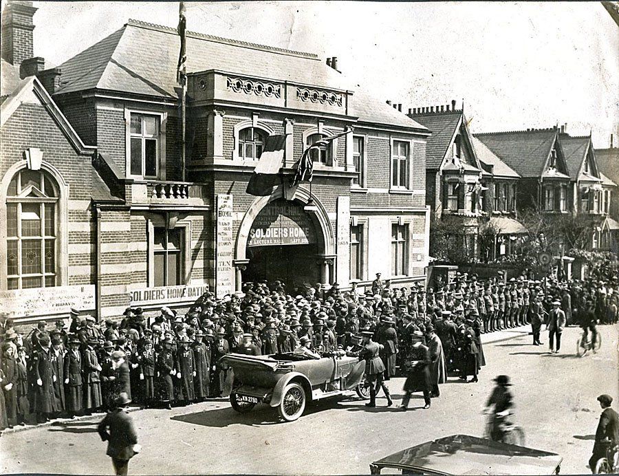 Church House survived the Great War but, after a narrow escape on 6th September 1940, the building succumbed to incendiary bombs on the night of 17th April 1941. Unfortunately, it was impossible to get firefighters to the site because Church Road was blocked by the ruins of the Parish Church, bombed earlier in the night. Nothing remains of the building but a couple of brick walls around the Council depot and the terrace balustrade which can be seen in one of the photos below. The entrance gate and lodge, also pictured, still exist. The Central Hall was also a WW II victim.