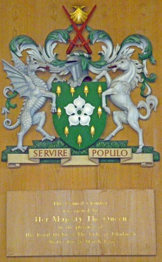 Crest of LBOB in the Council Chamber, opened on 26/03/1986 by H.M. the Queen.