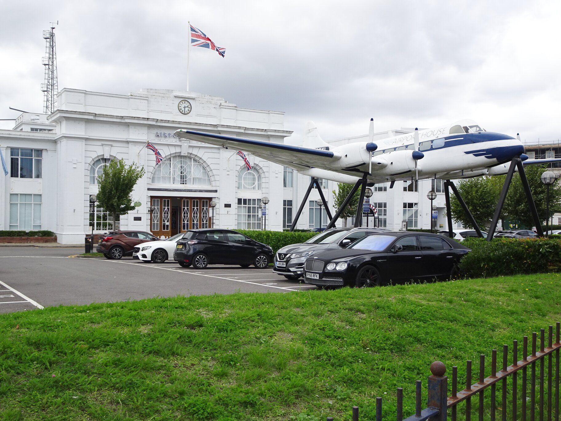 Croydon Airport terminal building looking much as it did when opened in 1928 as seen from Purley Way. The aircraft is a 14 seat De Havilland Heron similar to the last plane ever to take off from Croydon.
