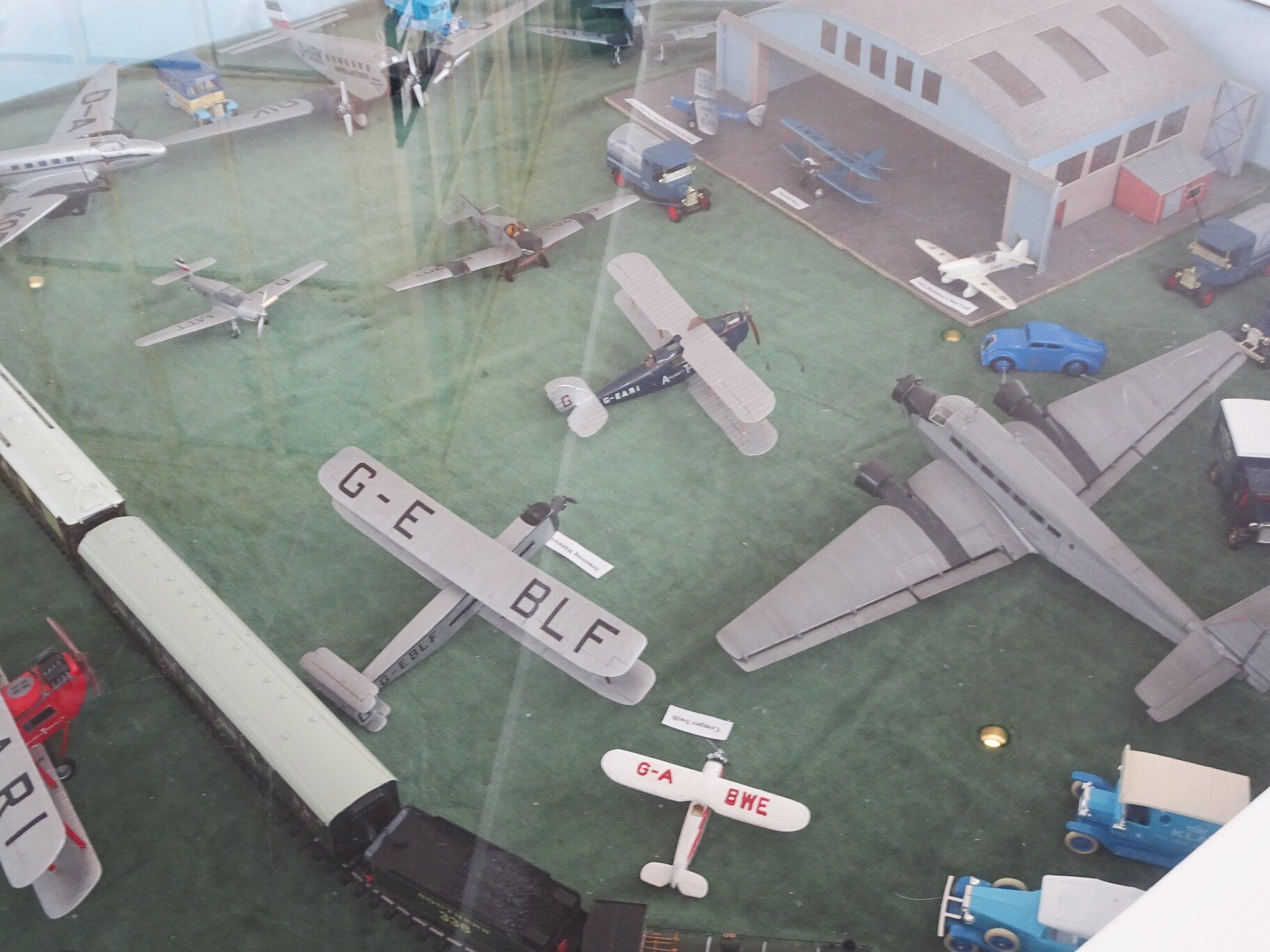 Some examples of the various planes using the airport during the 1930s. At the bottom can be seen a model train as many journeys were combined with rail travel in order to reach a destination.