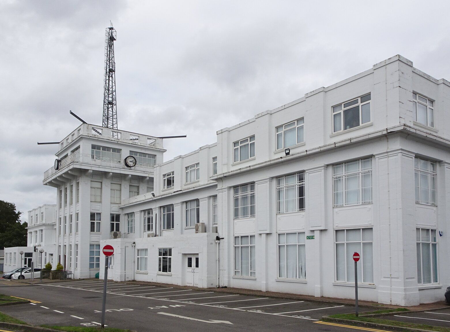 At the rear of the main building is the control tower and what would have been the standing area for aircraft, now a car park. The upper story was originally a free viewing area but became offices as the airport expanded.