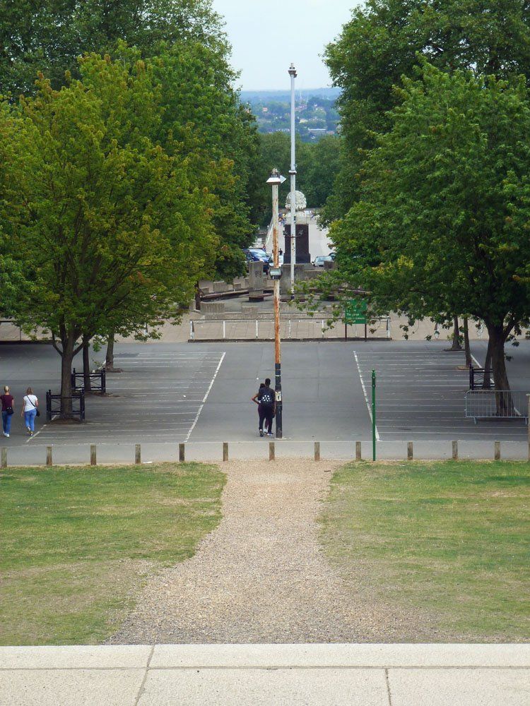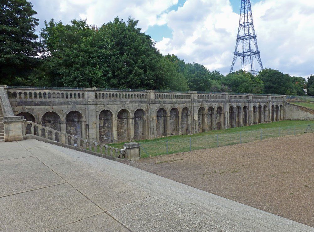 The Crystal Palace High Level station, on a branch from Nunhead, was finally closed in 1954 and has been completely obliterated by a housing estate. However, an unusual vaulted walkway remains under Crystal Palace Parade (in the background) connecting the old station with the Park and its exit can still be seen.