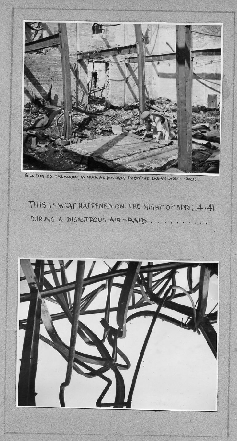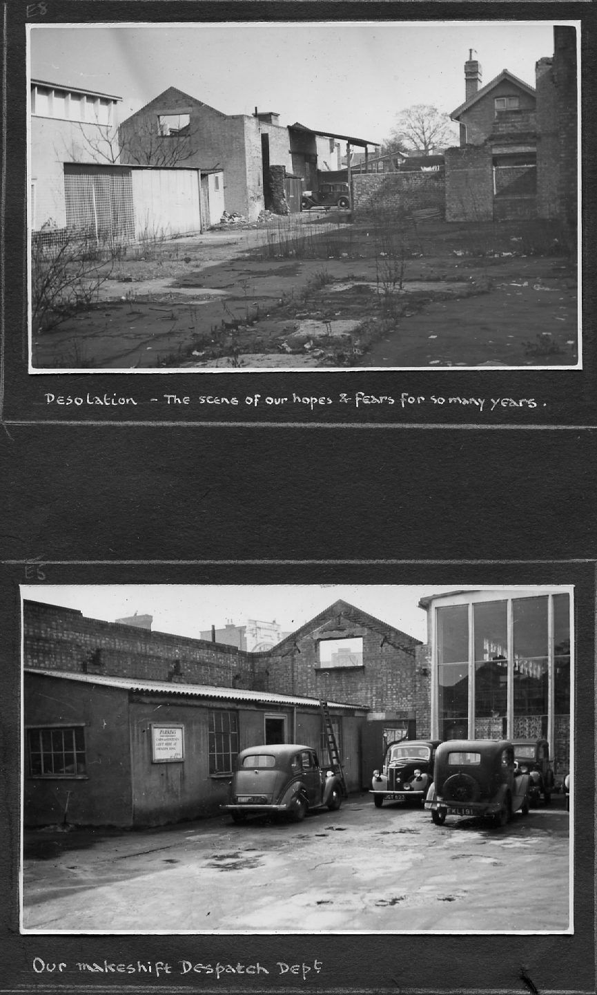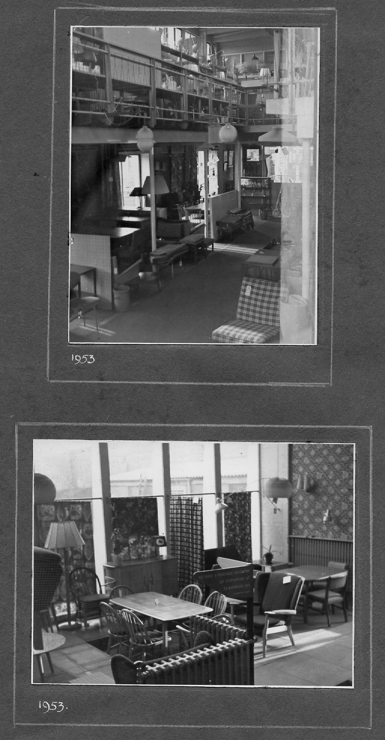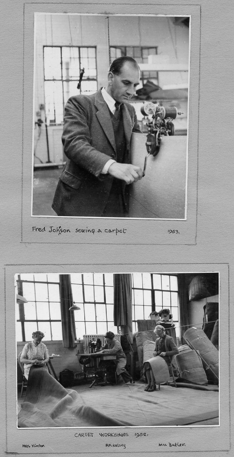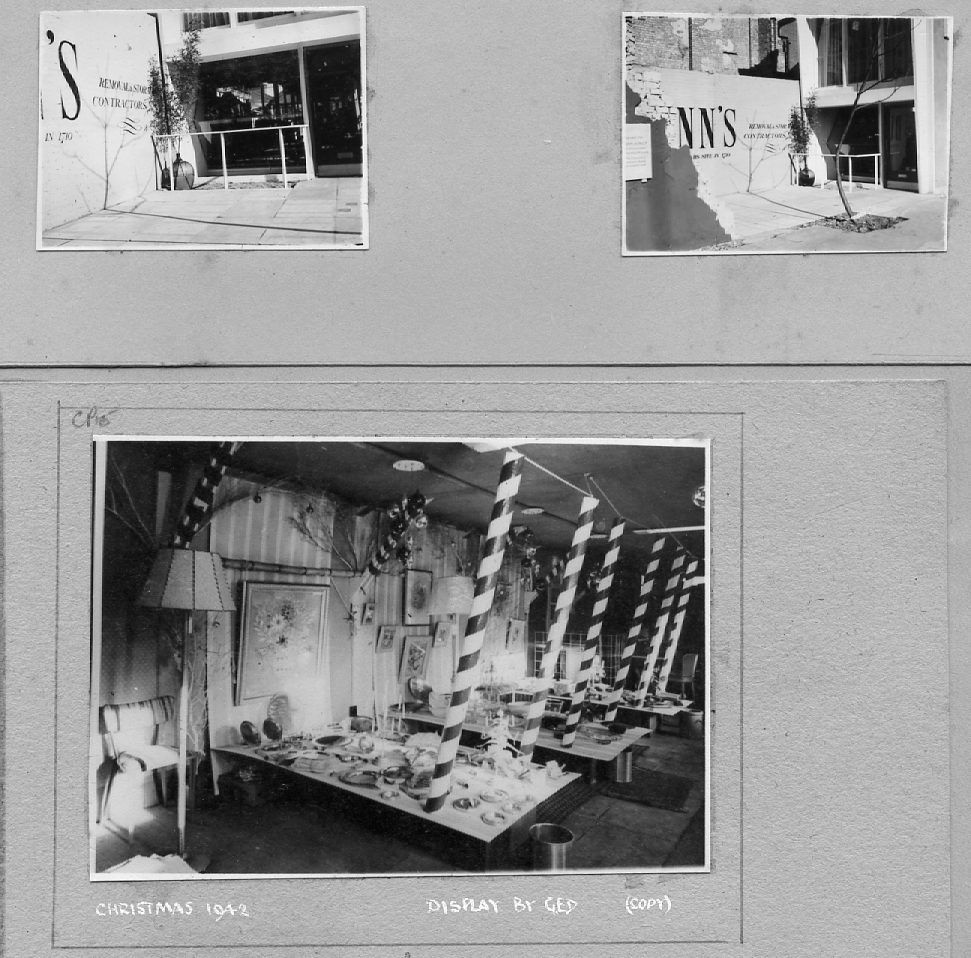 The pictures below are as they appear in the album, pasted on a variety of coloured paper. They are not entirely in date order but many are captioned and dated. They include pre- and post-war photos covering the many activities of the Company including furniture making and sales, coffins and warehousing. A number of photos are of the staff around 1950 and if they or their descendants can provide any more information, this would be gratefully received.