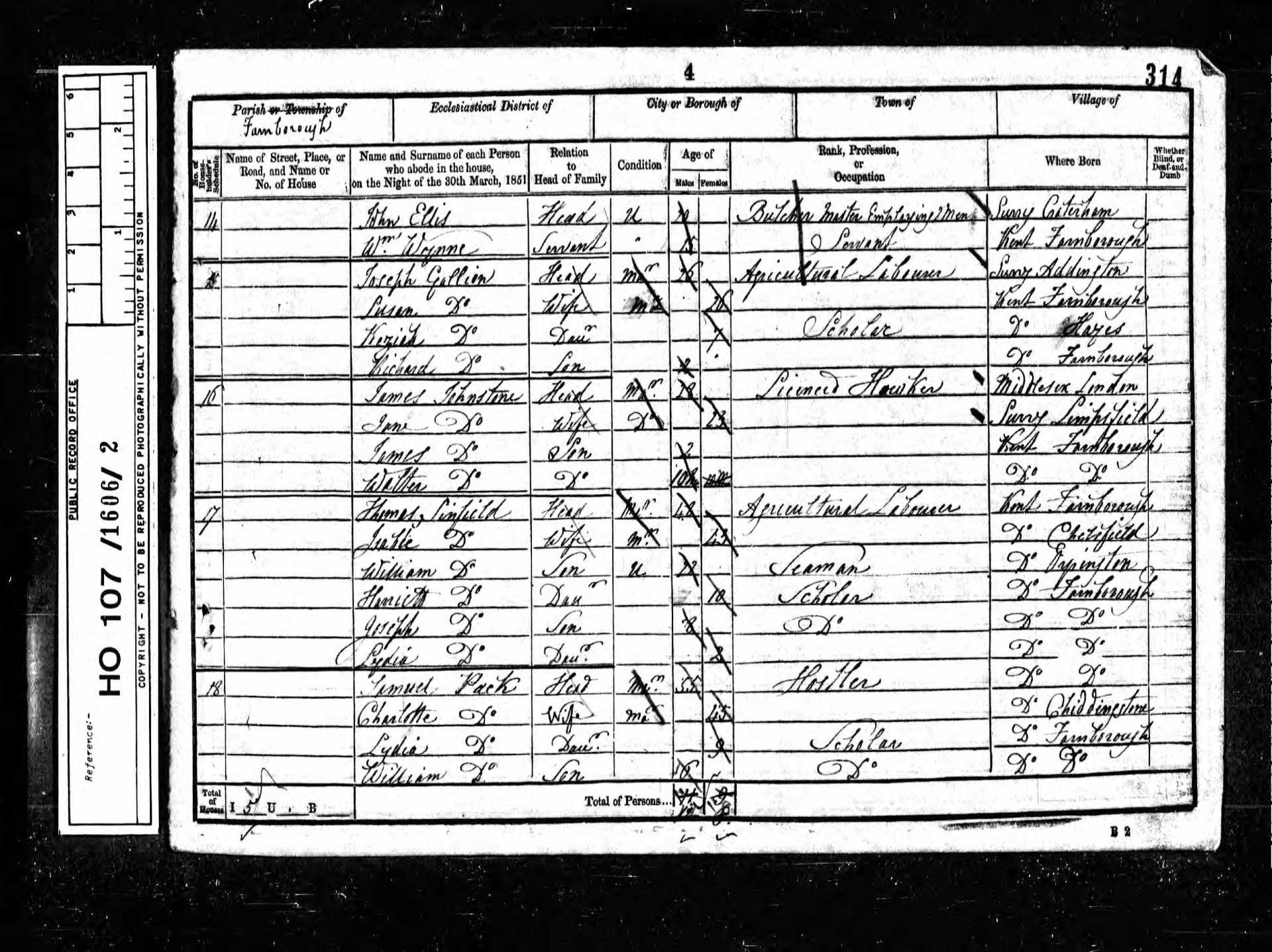 18 William Pack Son 16 1835 Male Farnborough, Kent, England