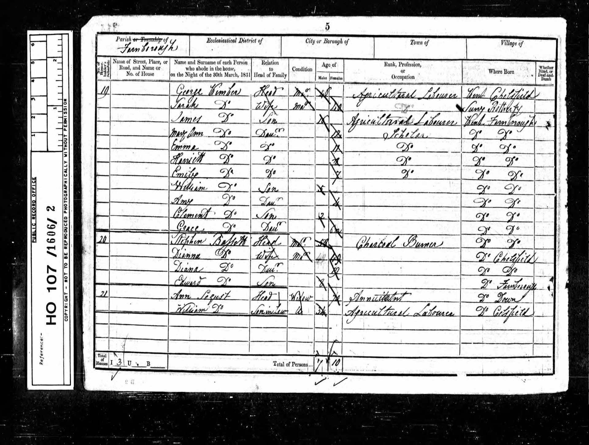 19 Mary Ann Kimber Daughter 12 1839 Female Farnborough, Kent, England
