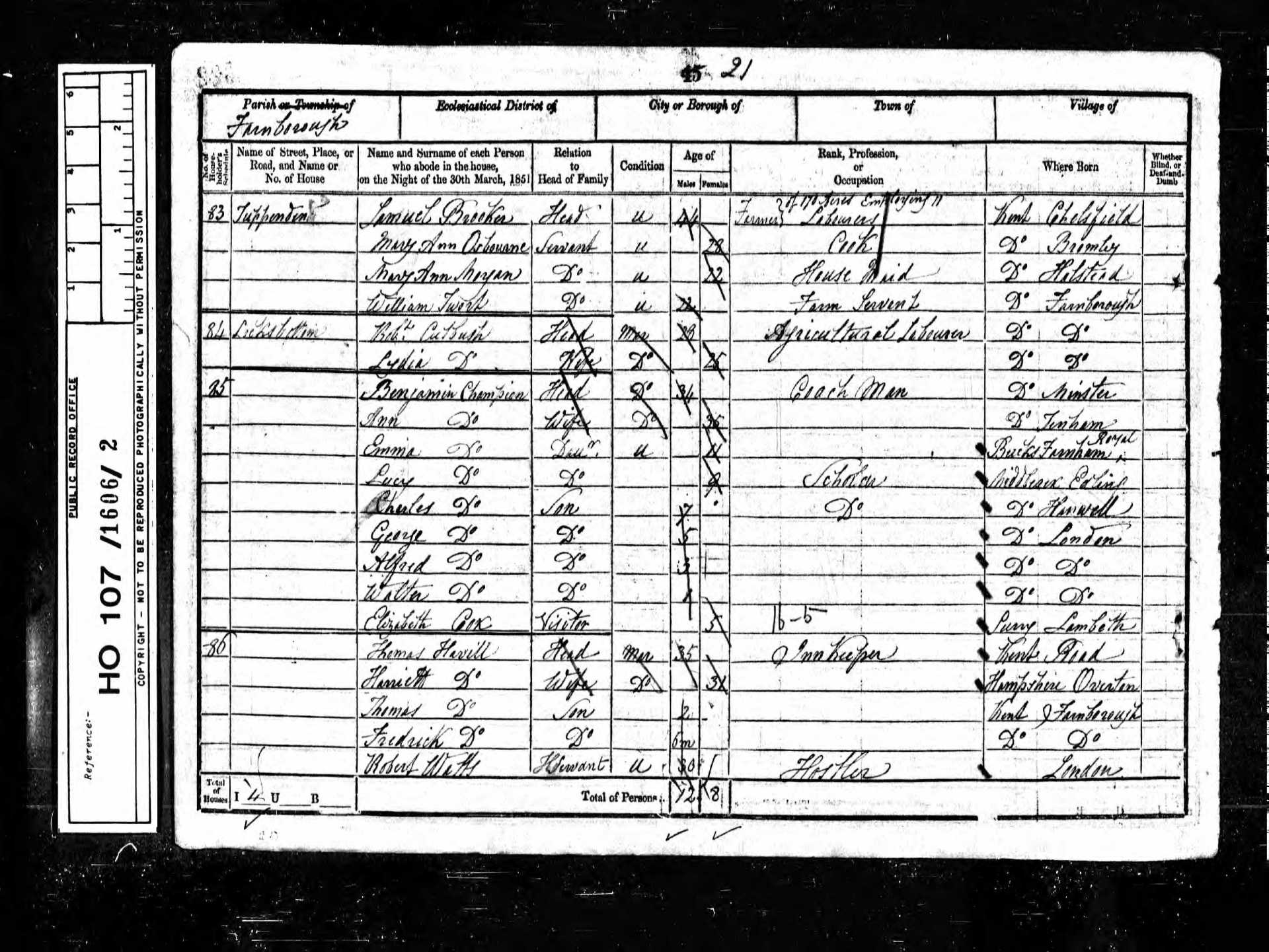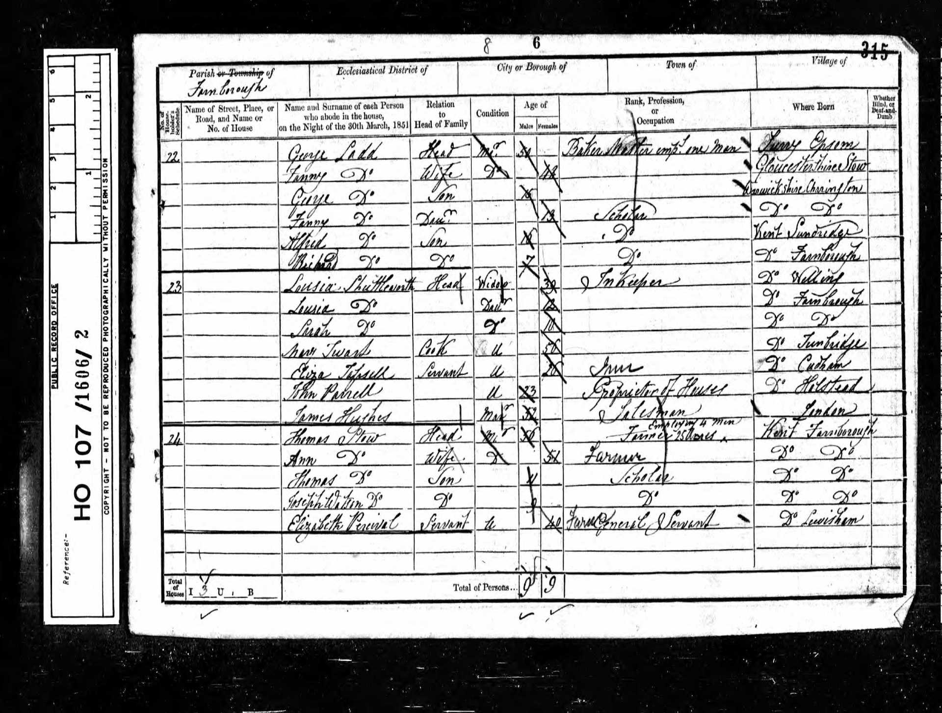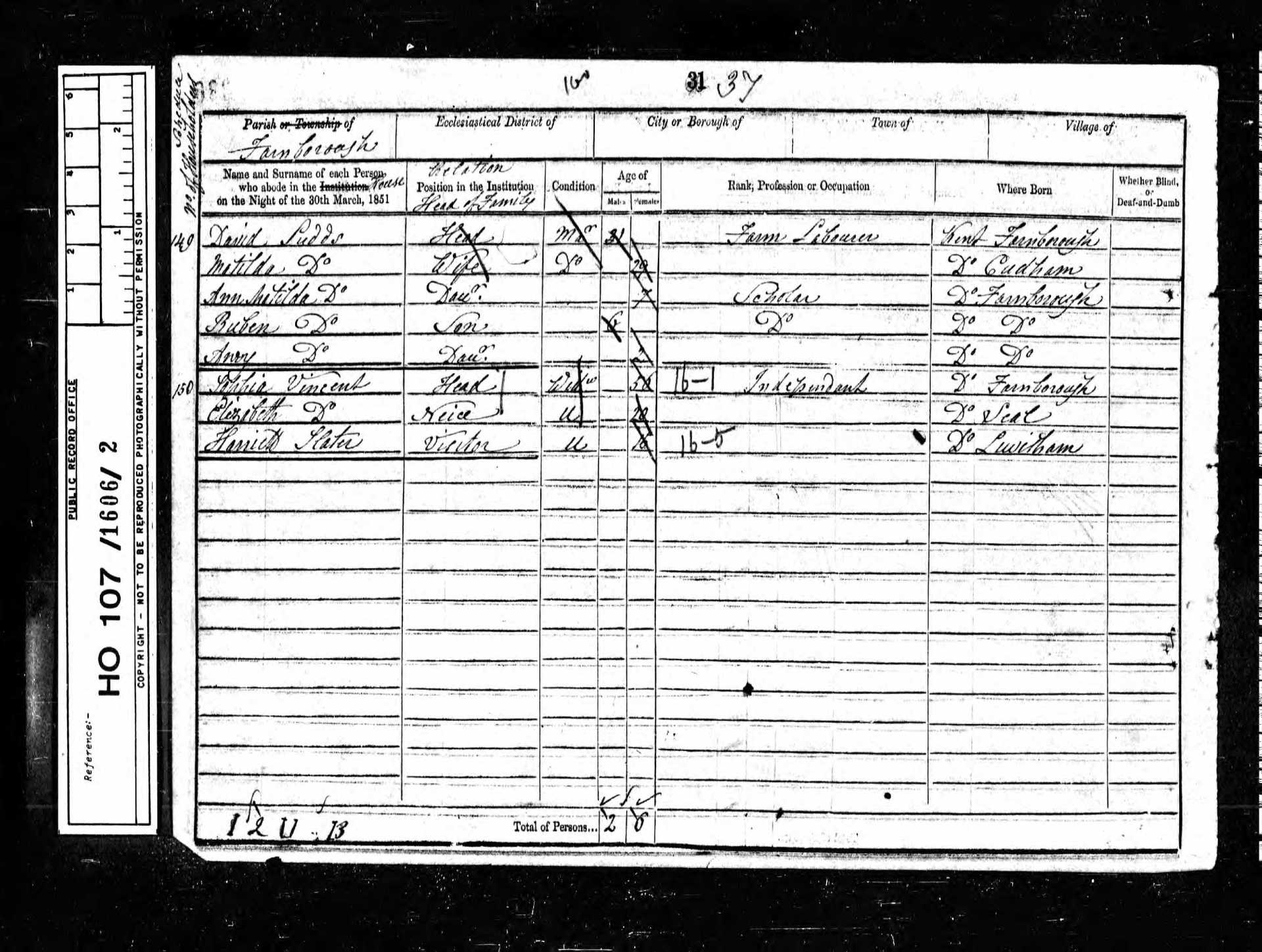 5 Sarah Ann Wynne Granddaughter 13 1838 Female Farnborough, Kent, England