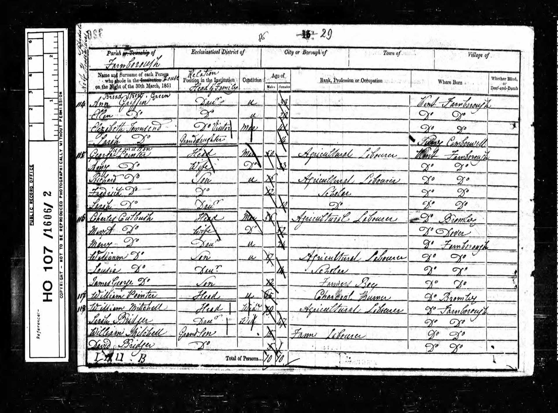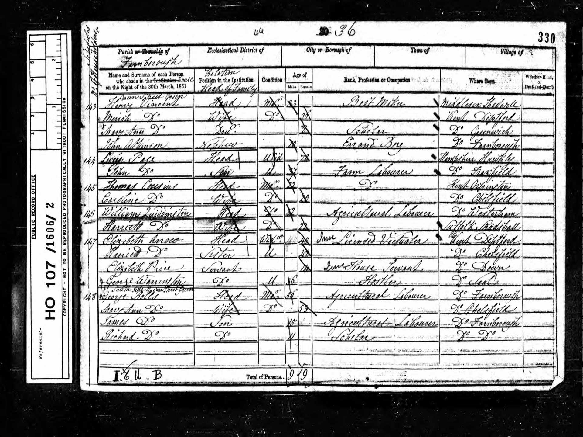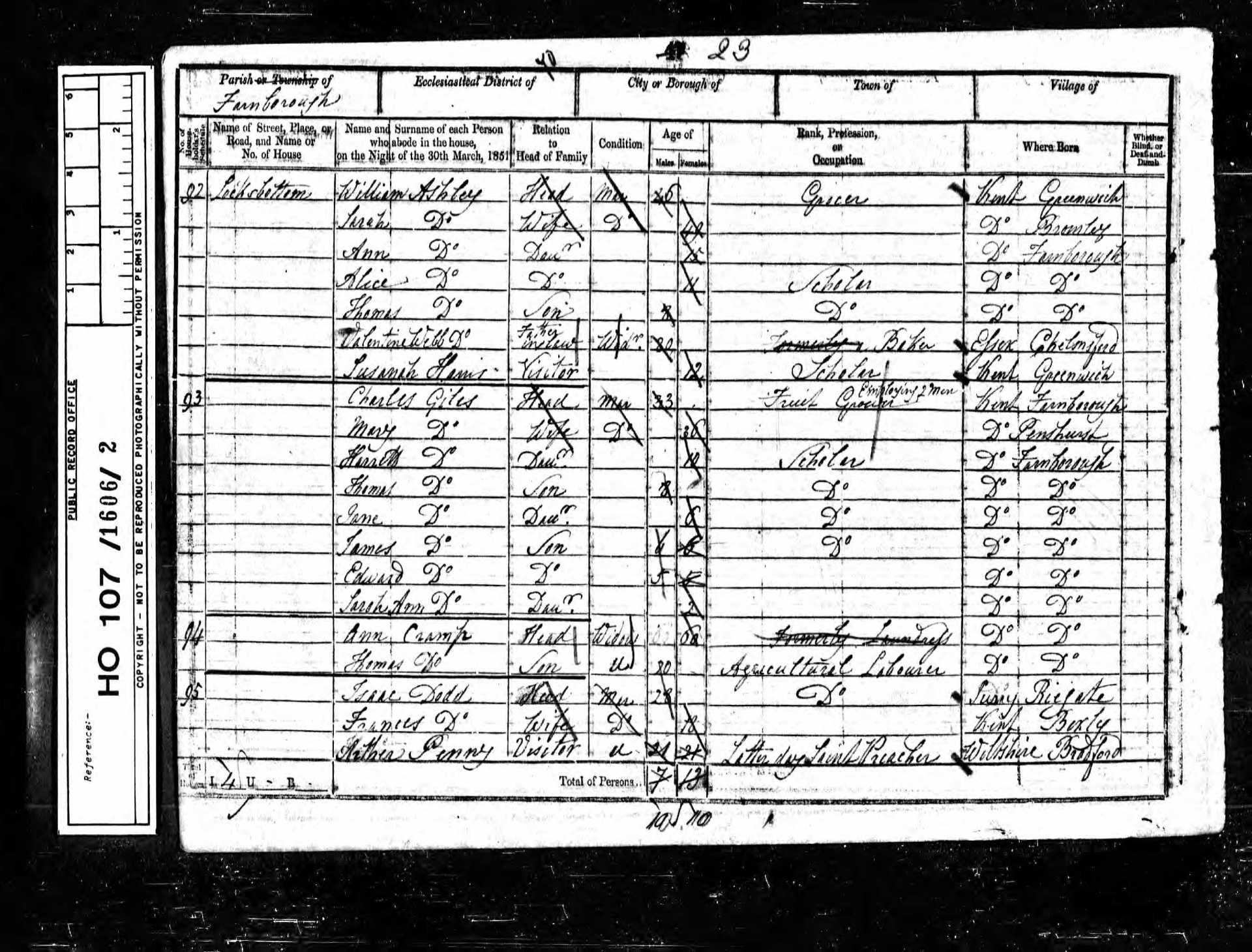 5 Sarah Ann Wynne Granddaughter 13 1838 Female Farnborough, Kent, England