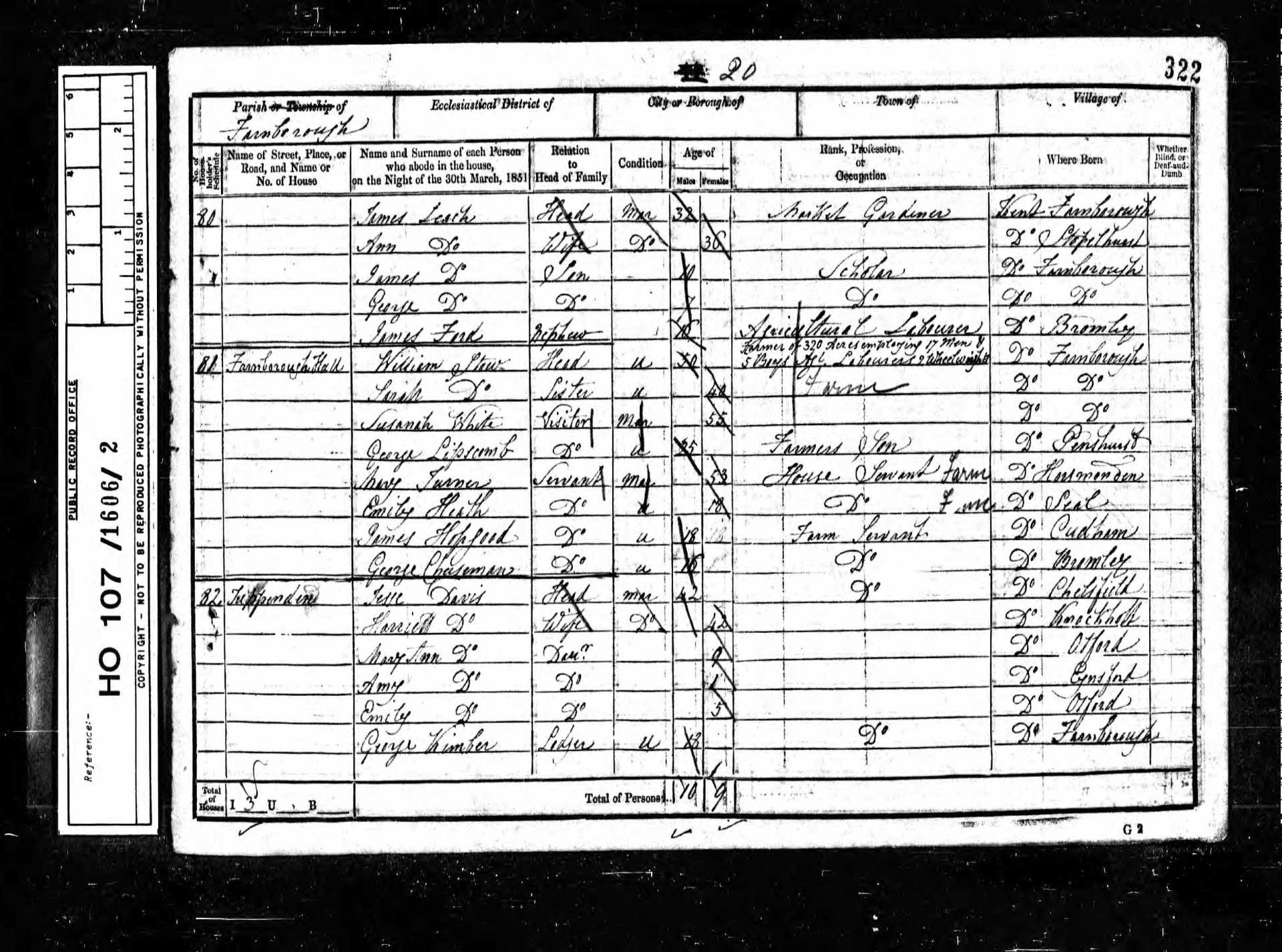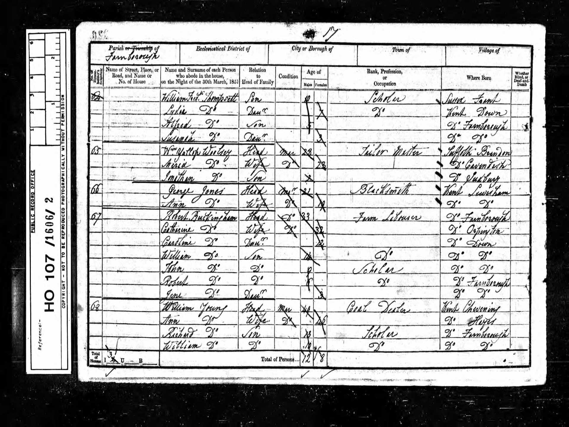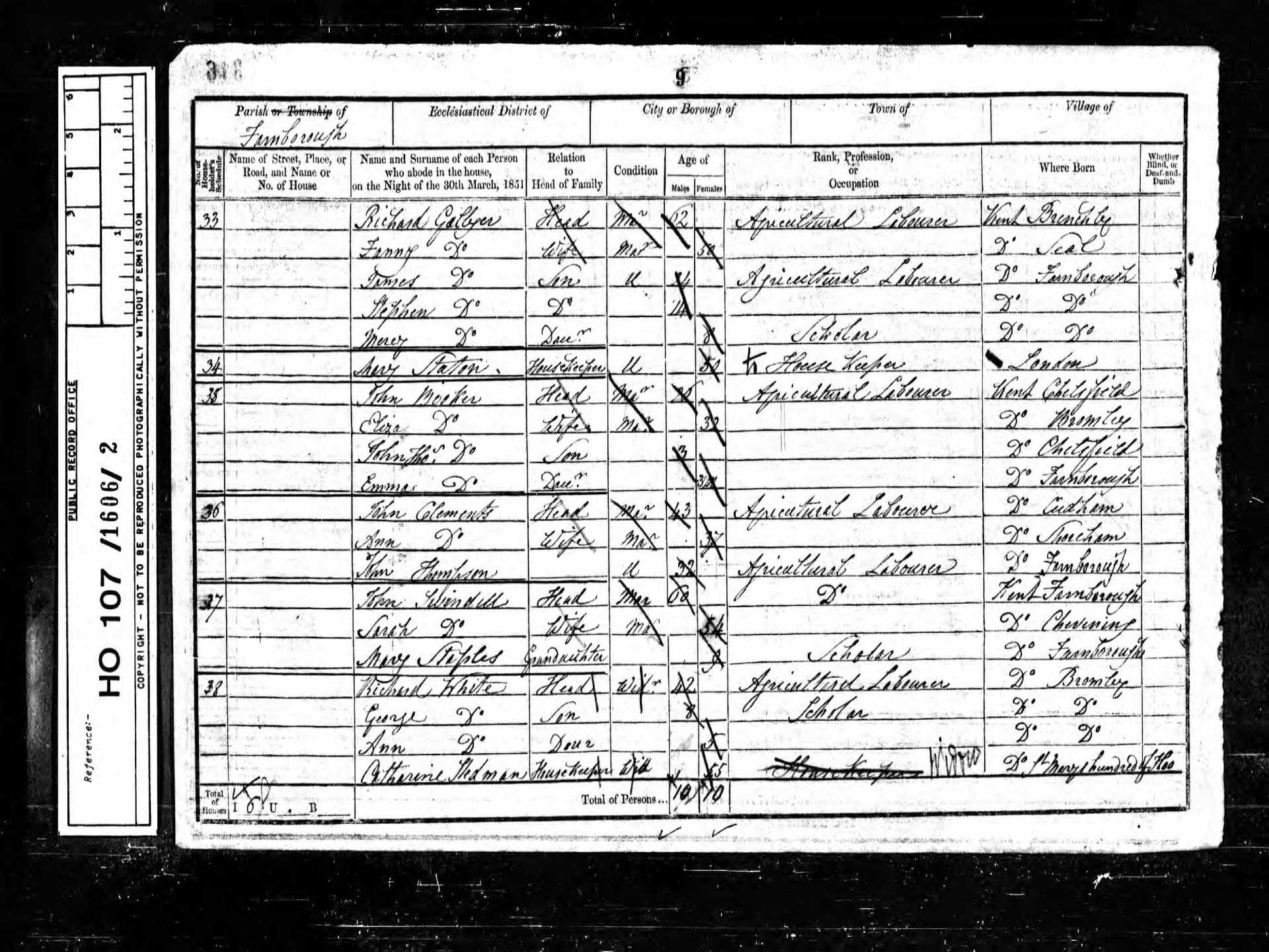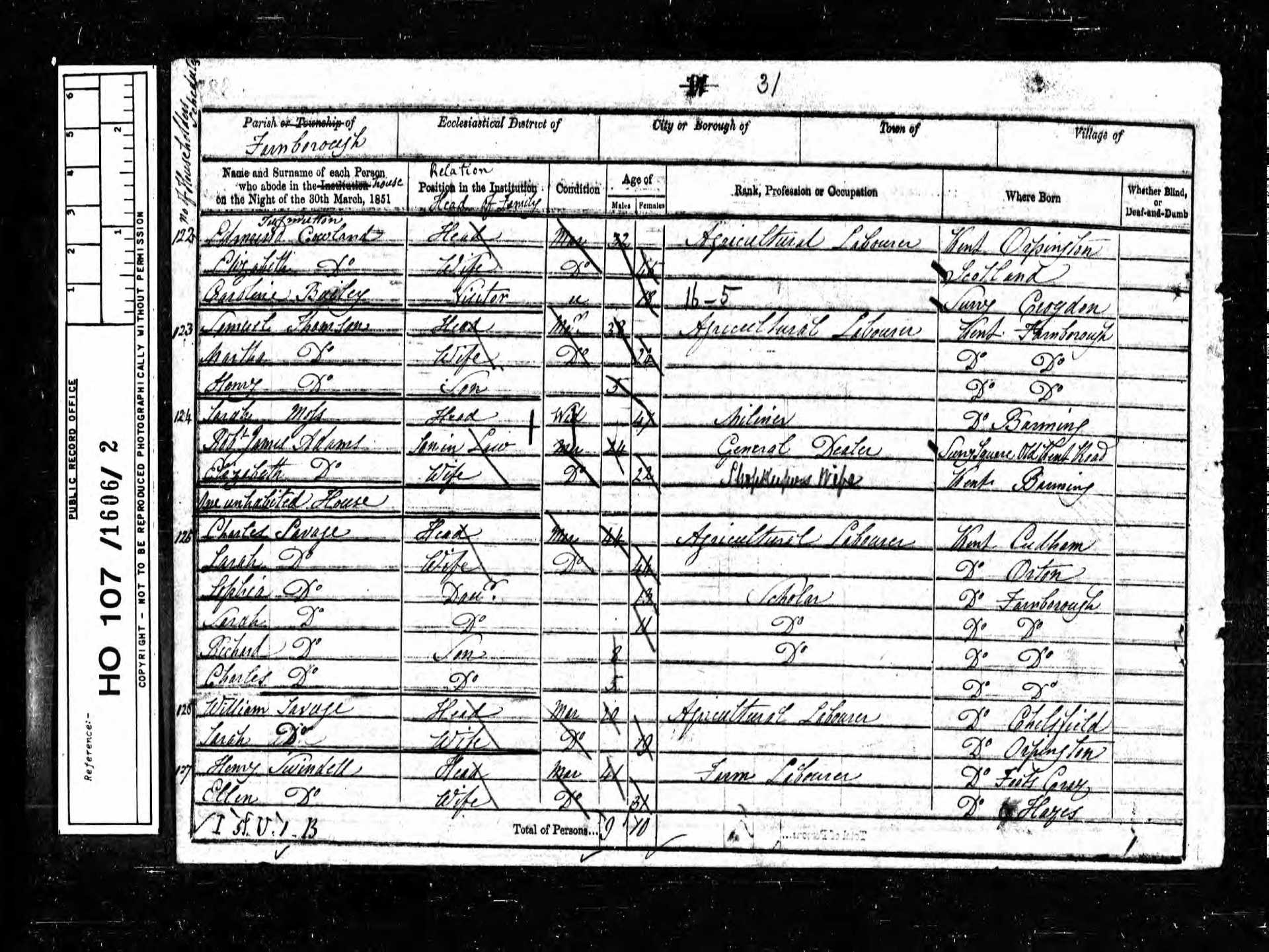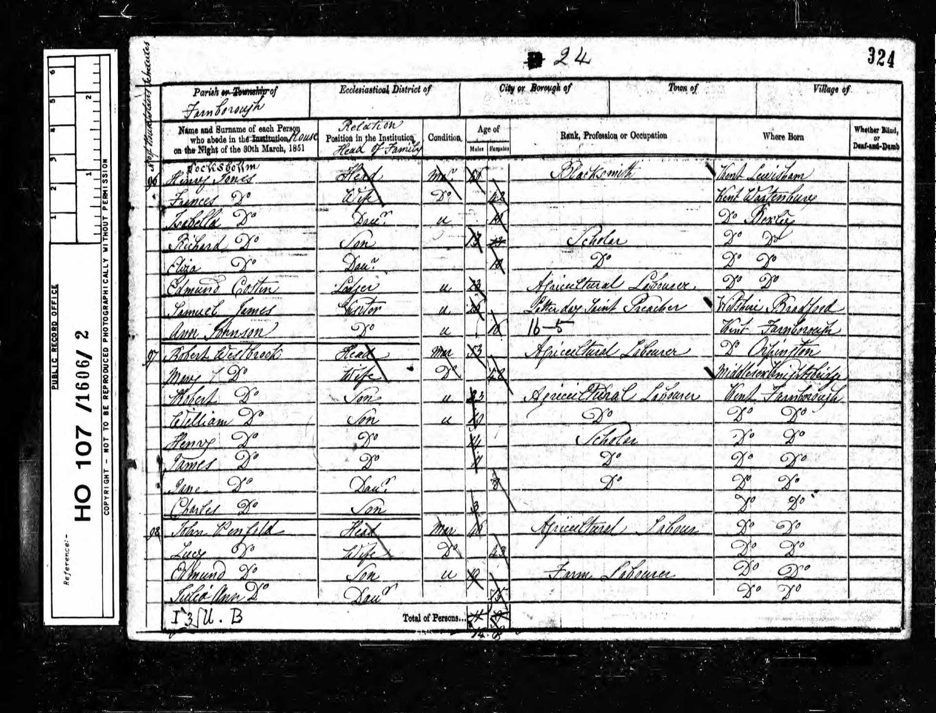9 Thomas Johnson Son 20 1831 Male Farnborough, Kent, England