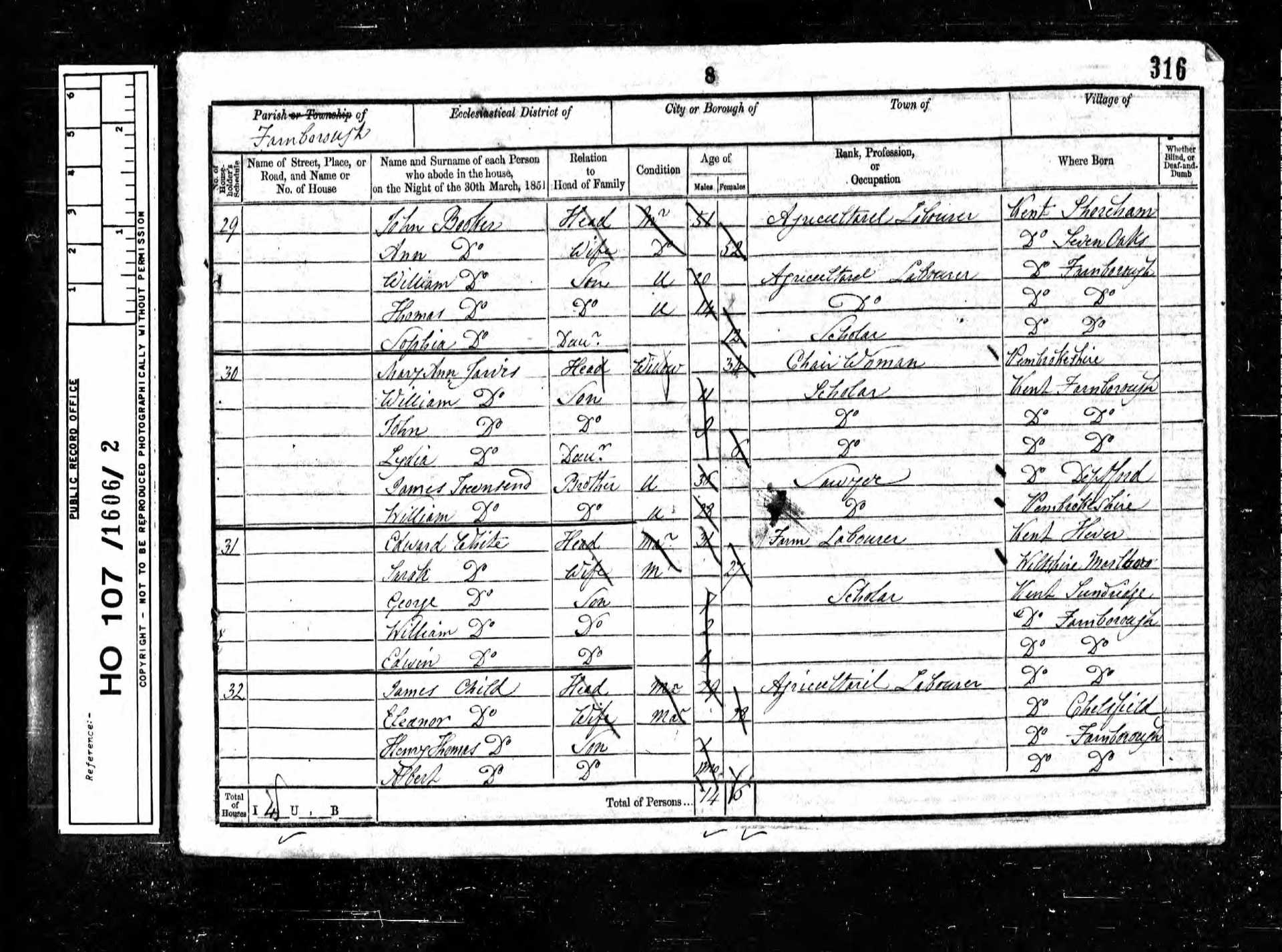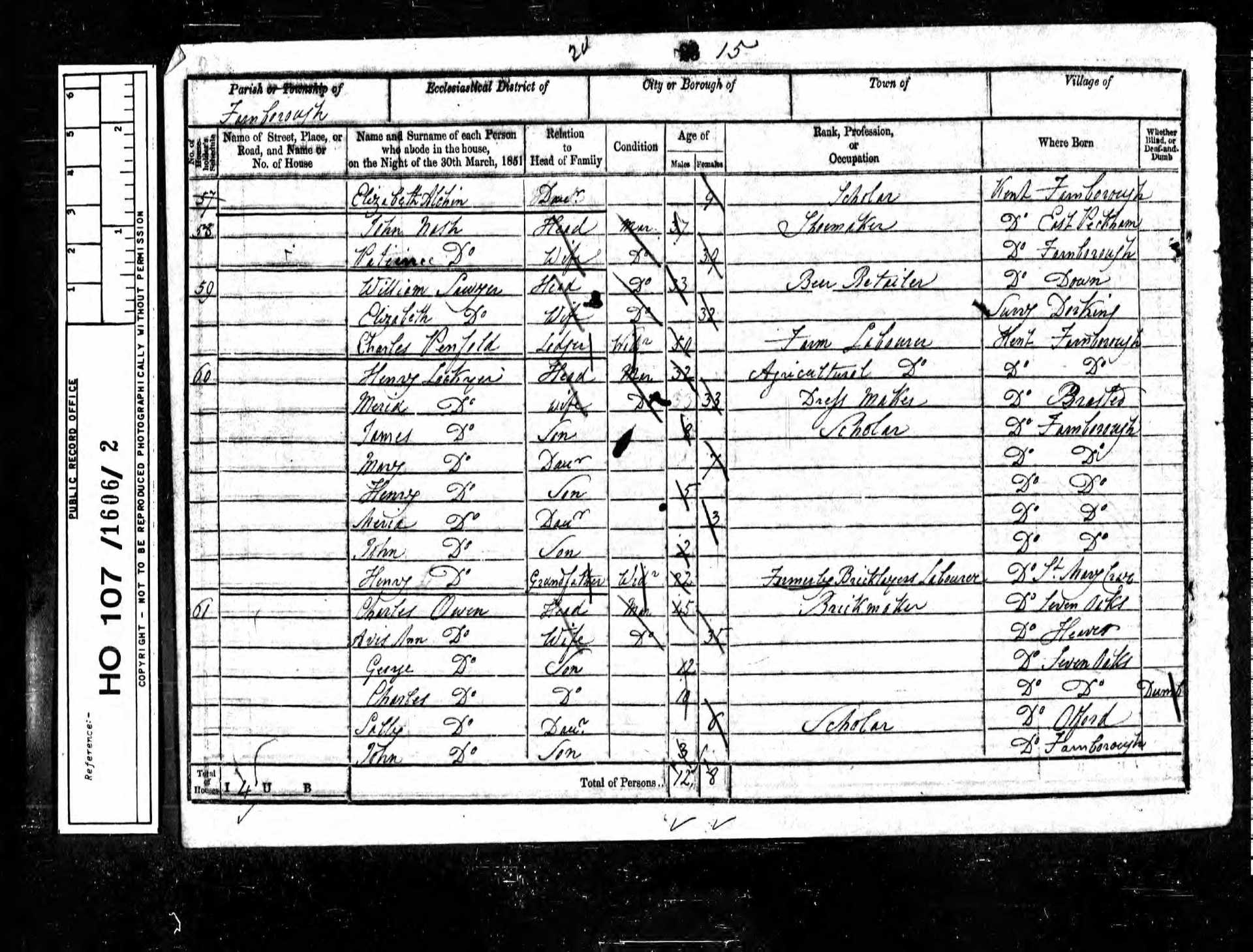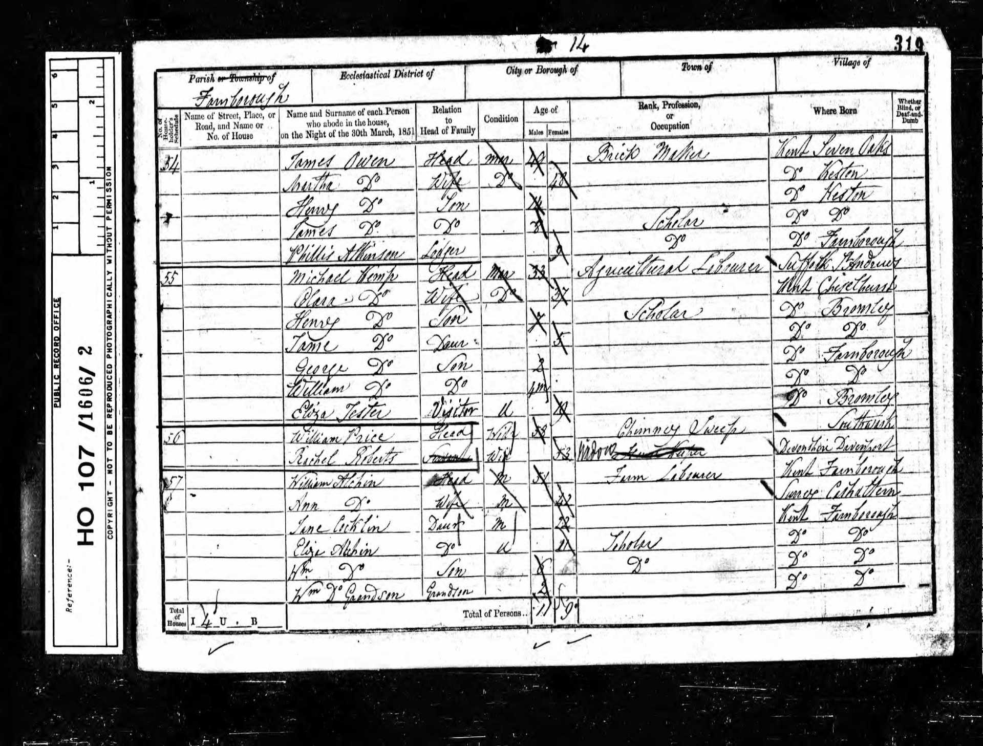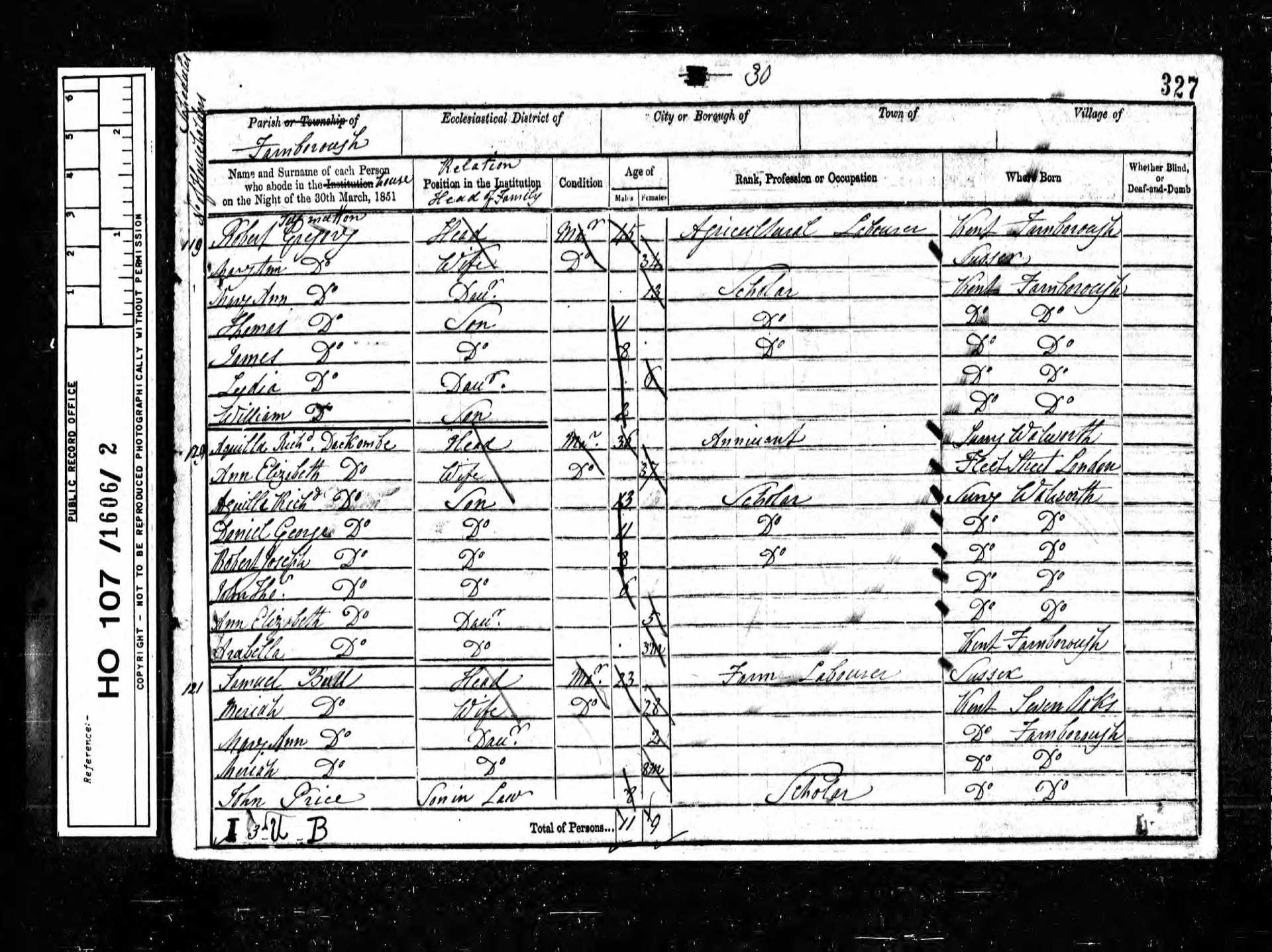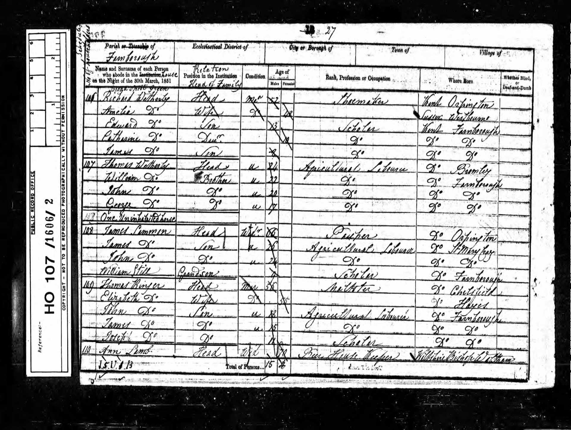 9 Thomas Johnson Son 20 1831 Male Farnborough, Kent, England