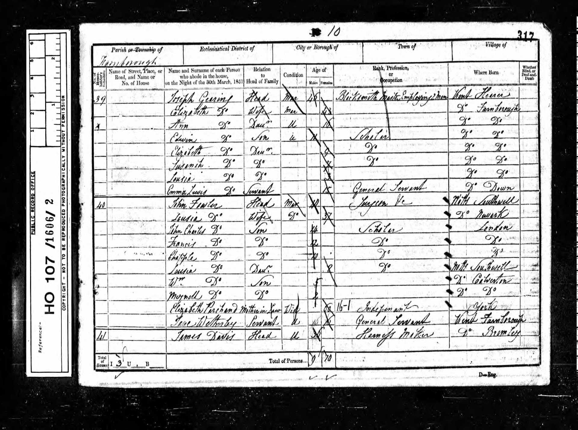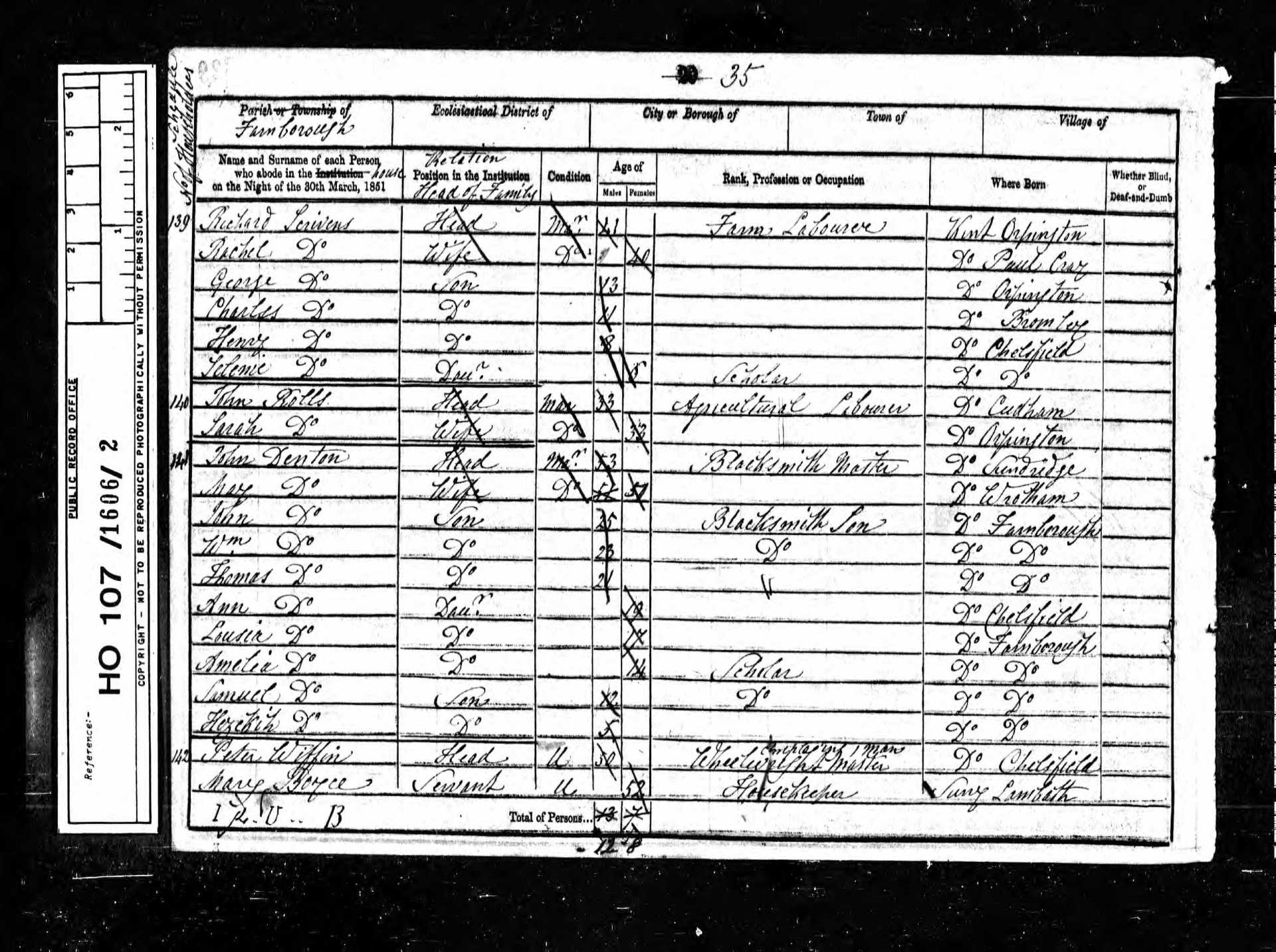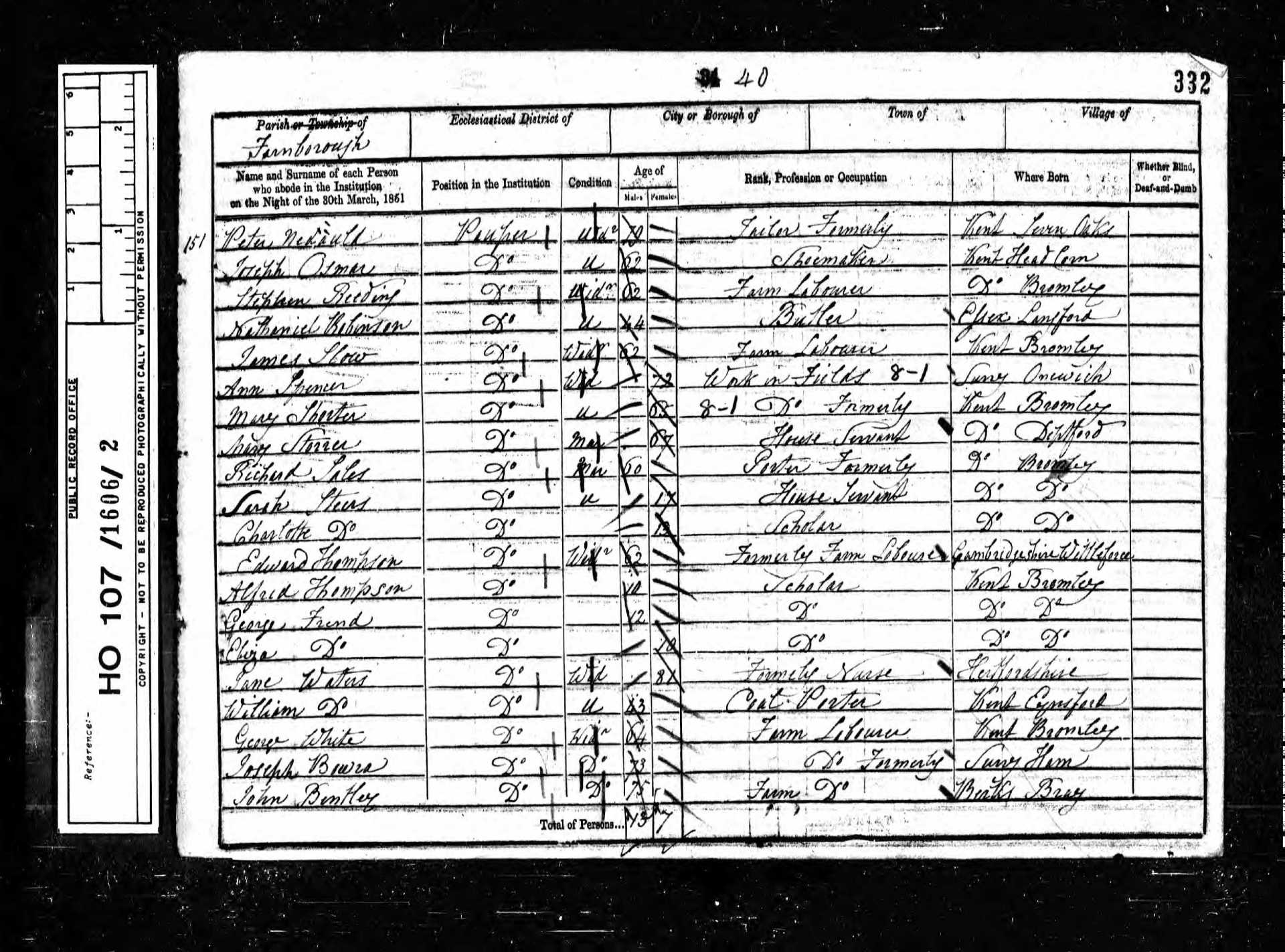 13 Jonathan Newitt Son 6 1845 Male Farnborough, Kent, England