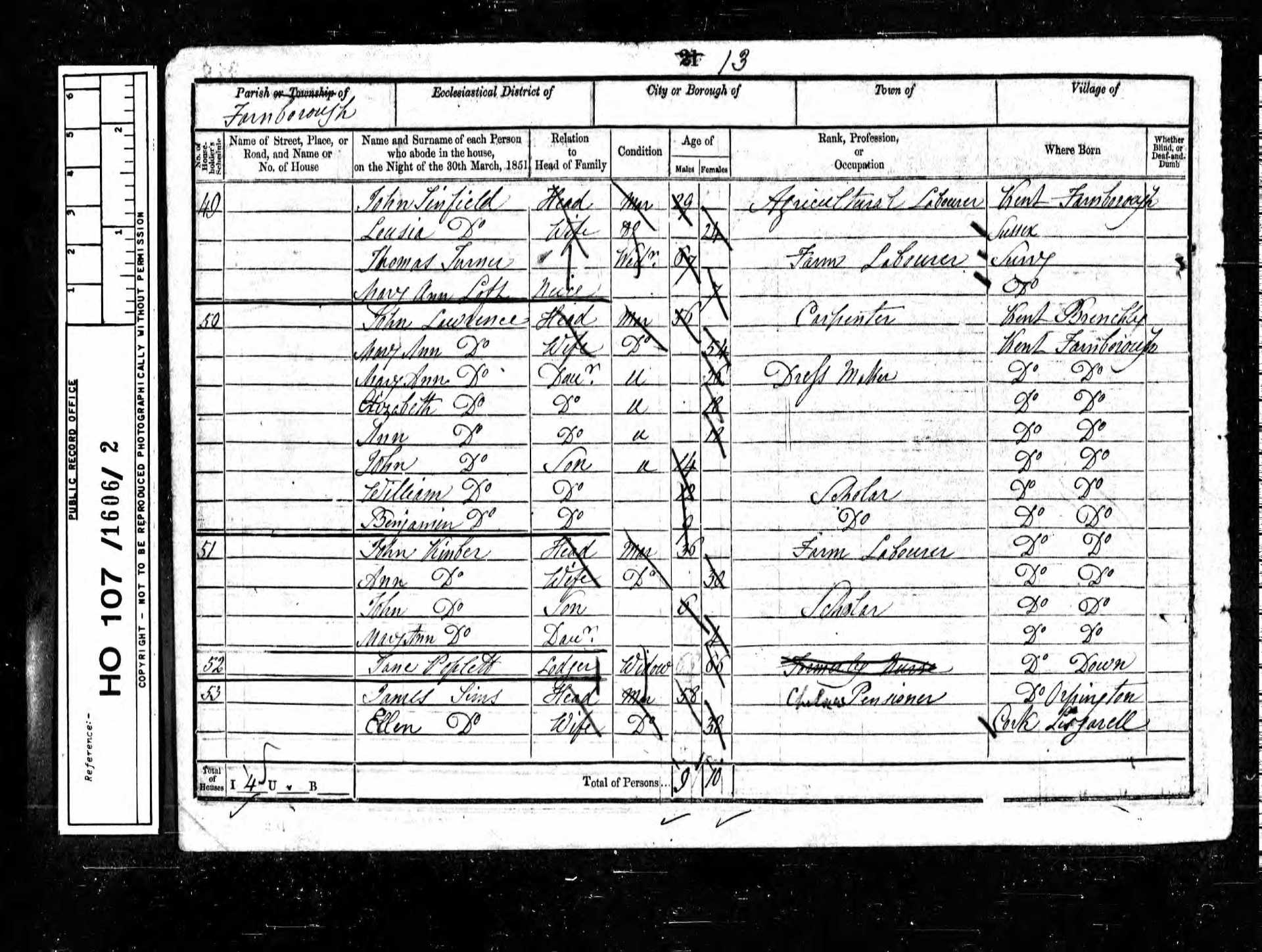 17 Harriett Sinfield Daughter 10 1841 Female Farnborough, Kent, England