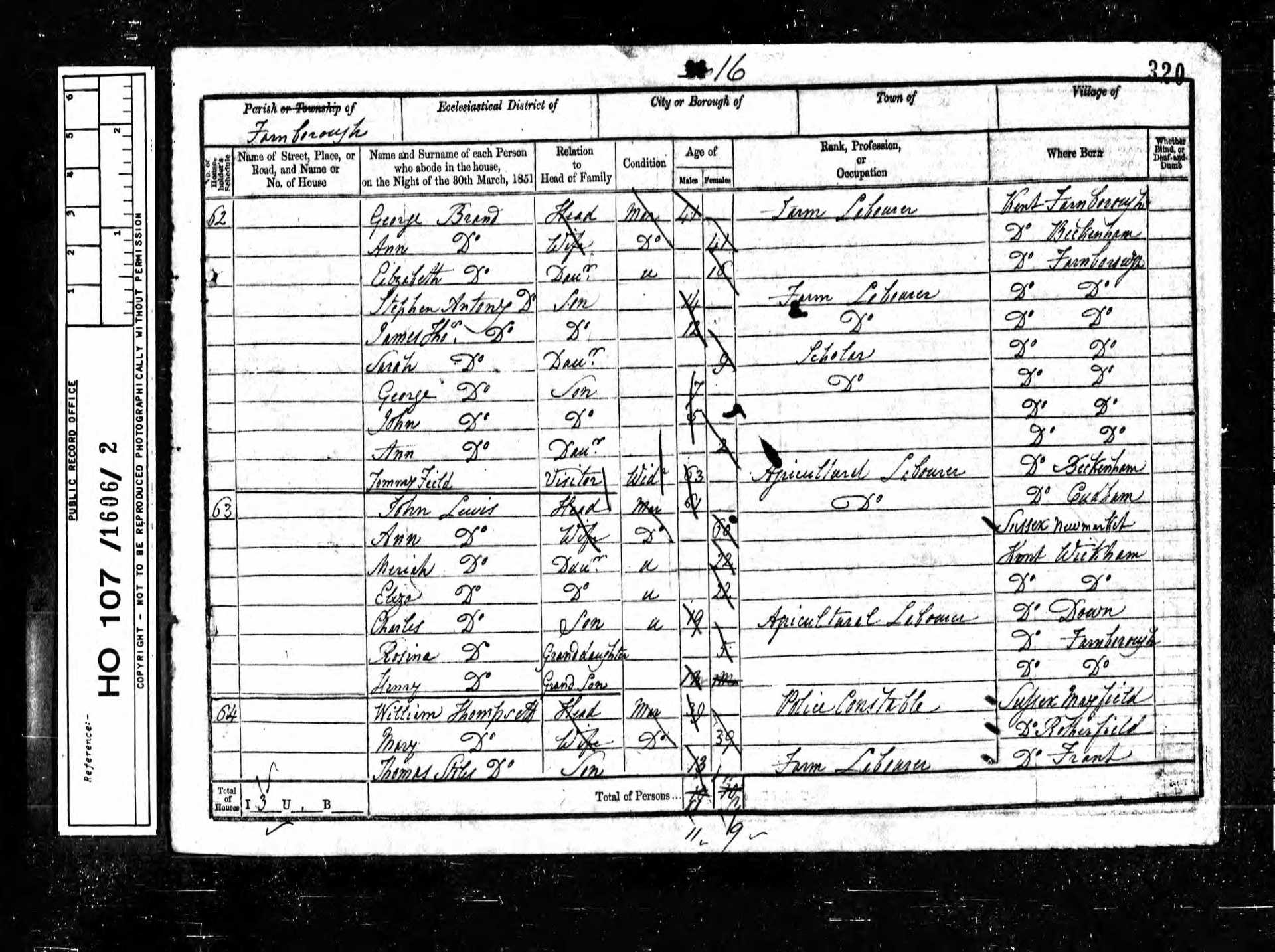 13 William Botten Lodger 35 1816 Male Frank, Sussex, England