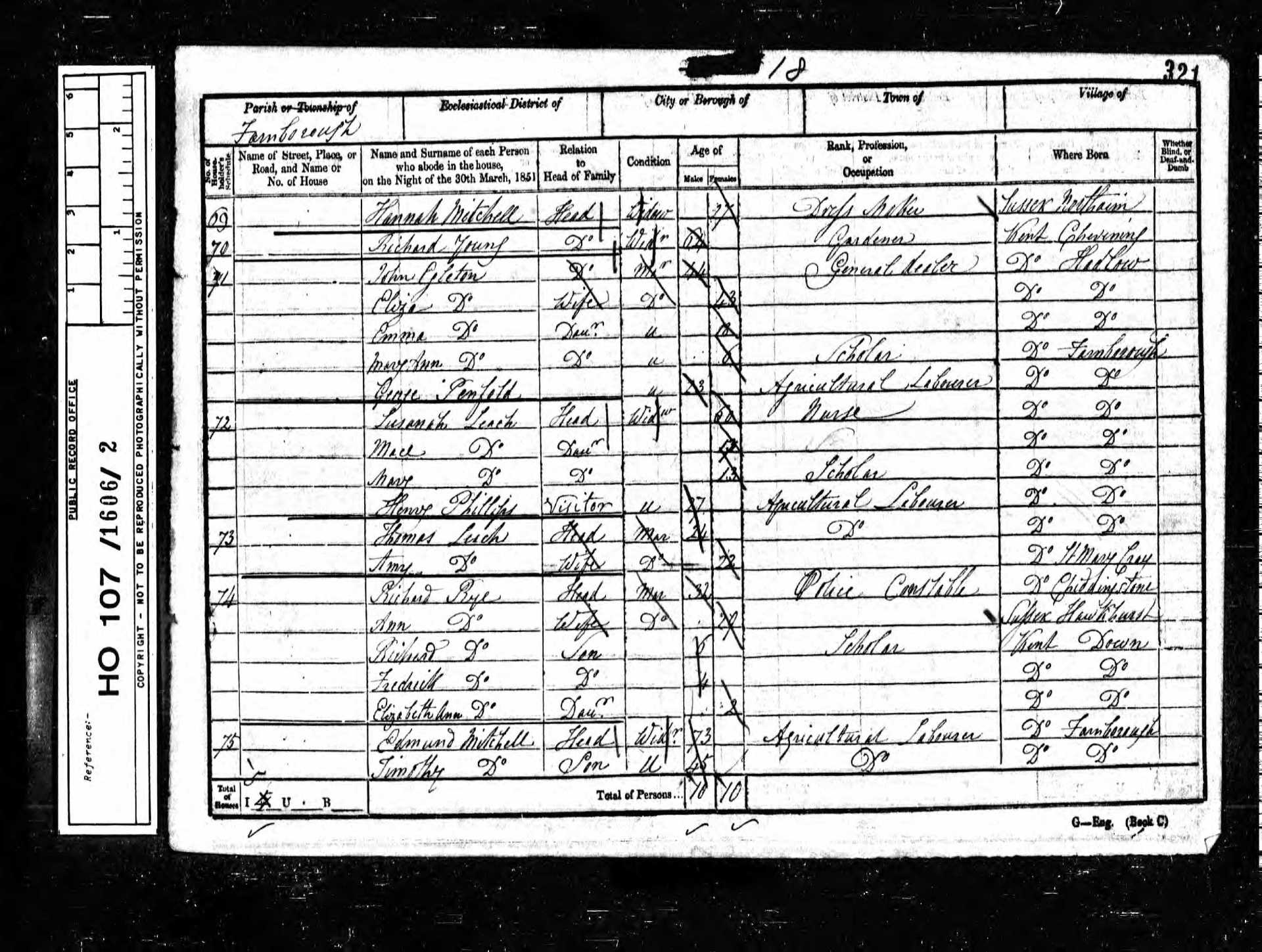 5 Sarah Wynne Head 70 1781 Female Tonbridge, Kent, England