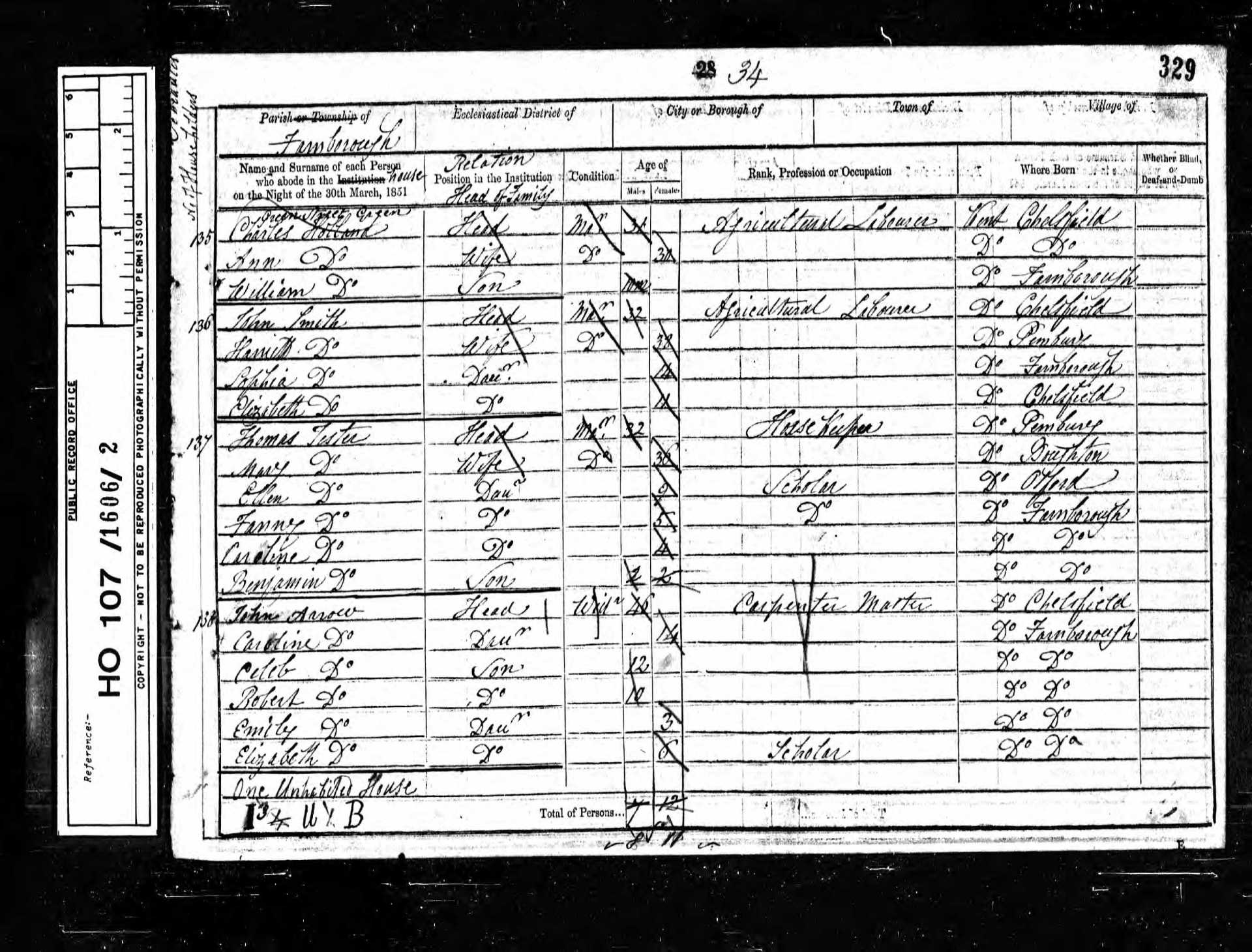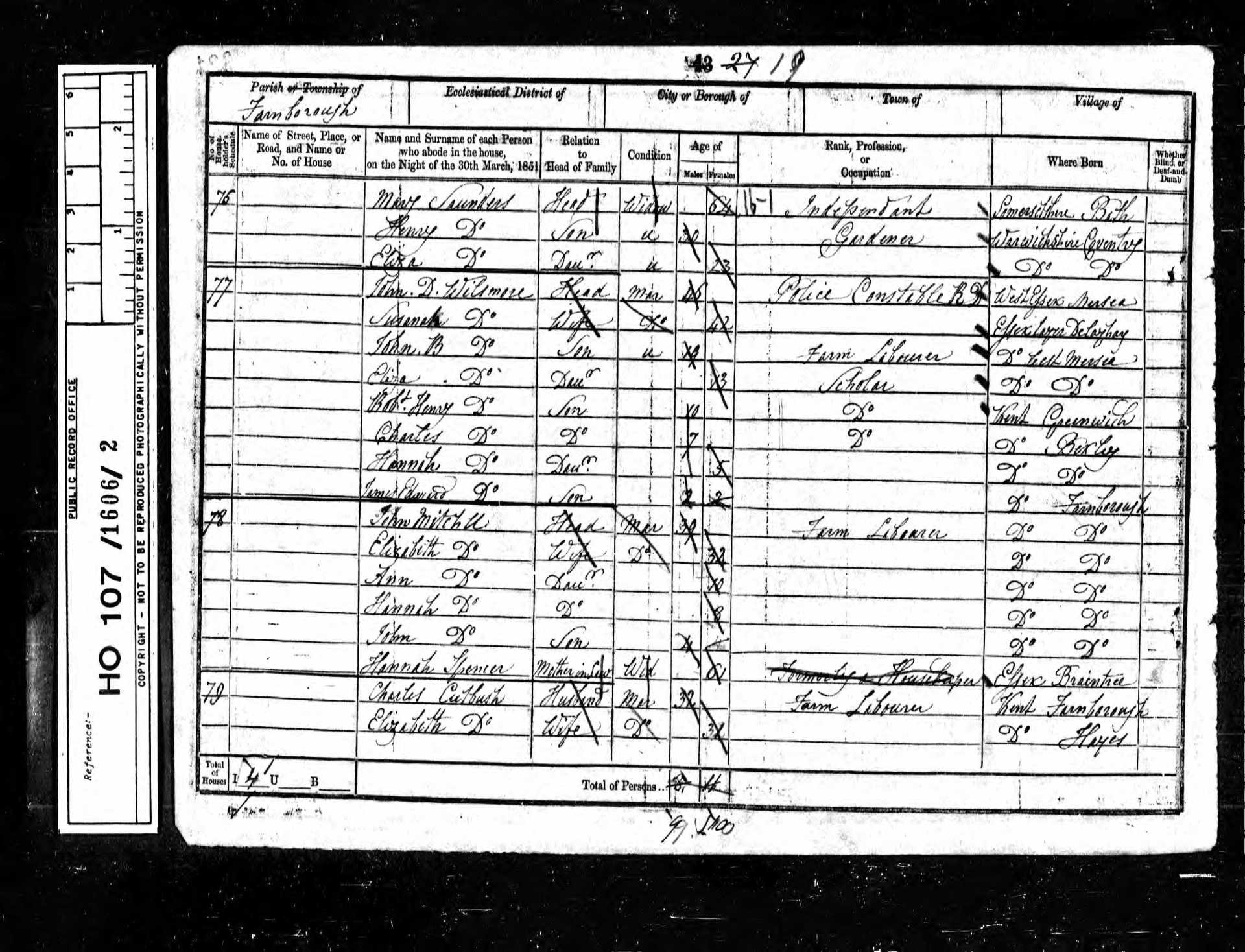 1 Mary Giles Daughter 15 1836 Female Farnborough, Kent, England