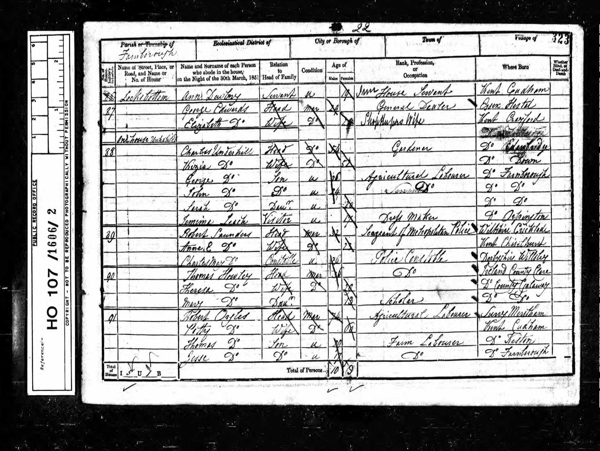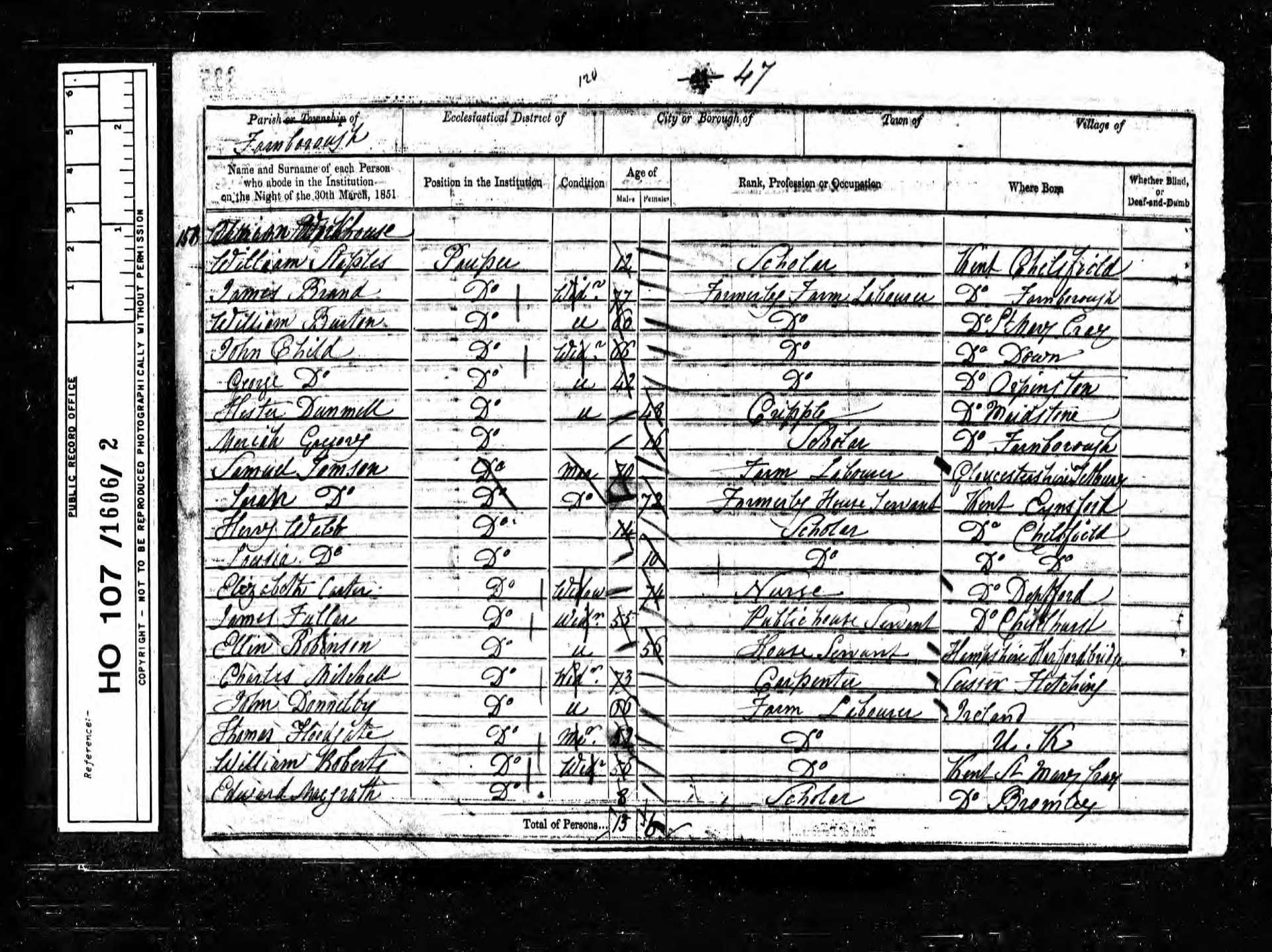 13 Charles Crafter Lodger 22 1829 Male Chelsfield, Kent, England