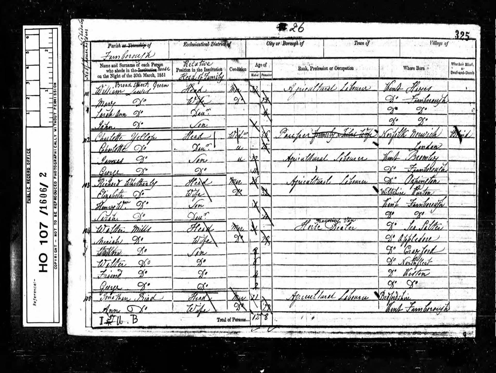154 James Lee Pauper 20 1831 Male Orpington, Kent, England