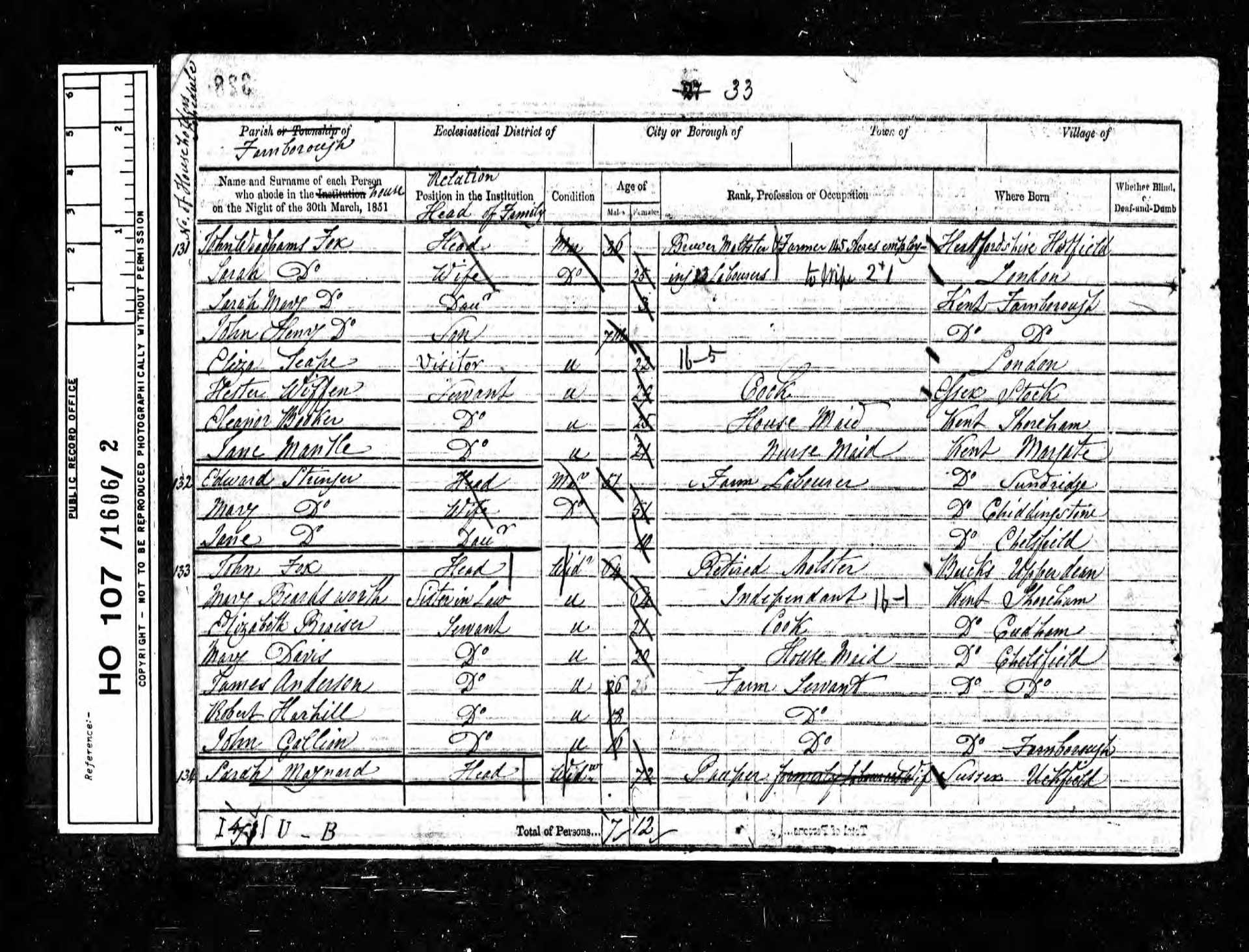 13 Wm Wynne Servant 15 1836 Male Farnborough, Kent, England