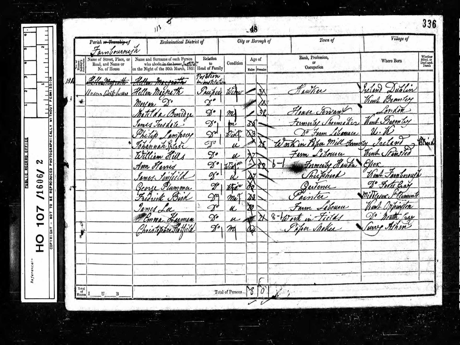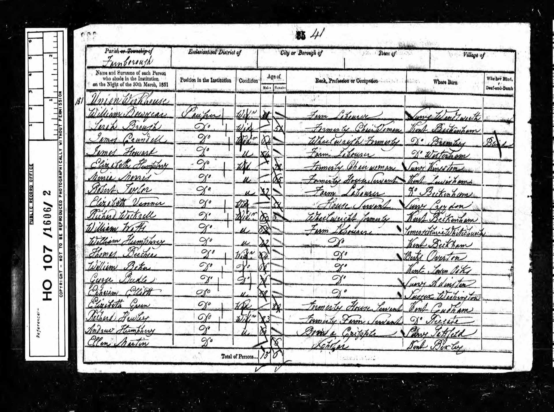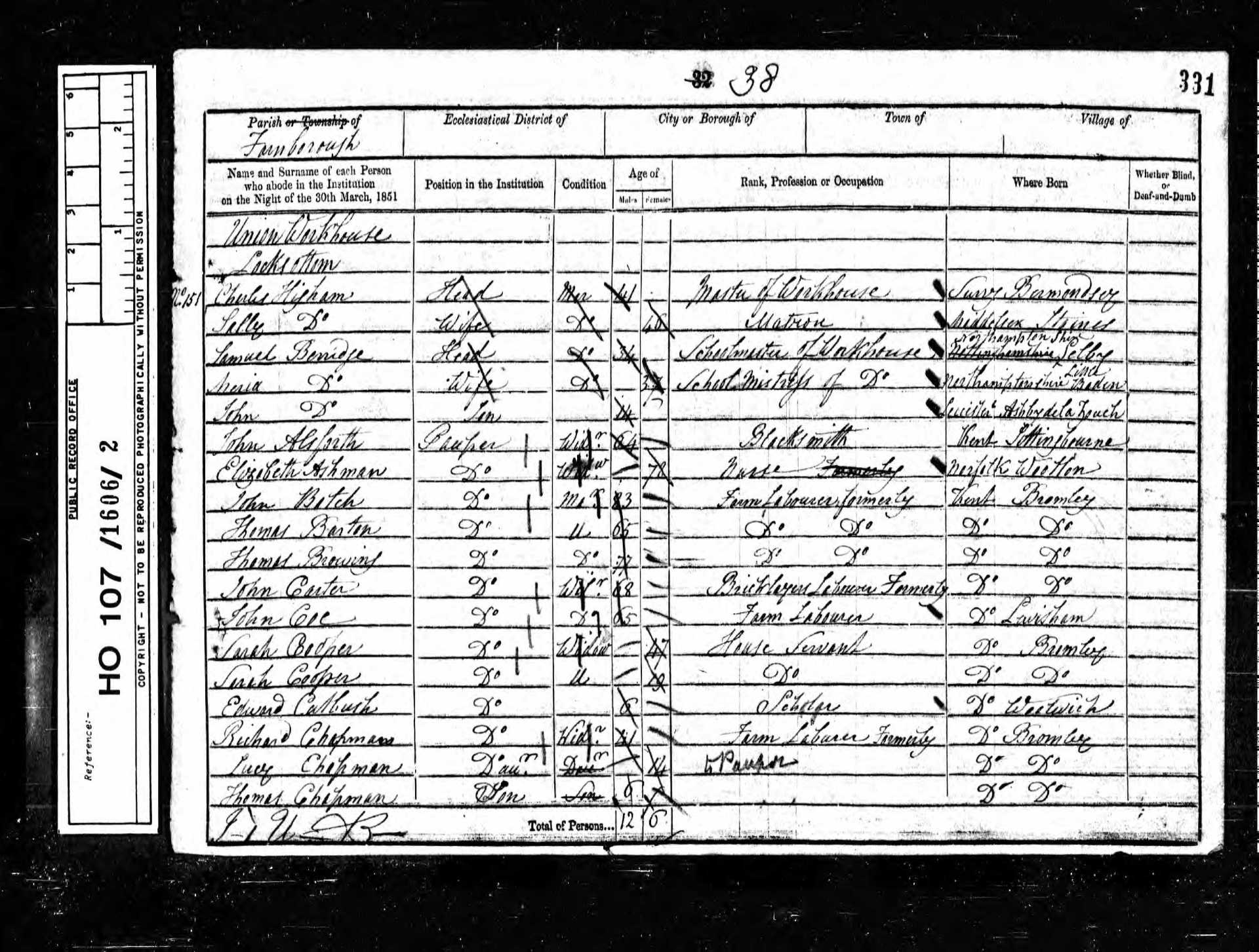 151 Caroline Asher Pauper 1 1850 Female Farnborough, Kent, England