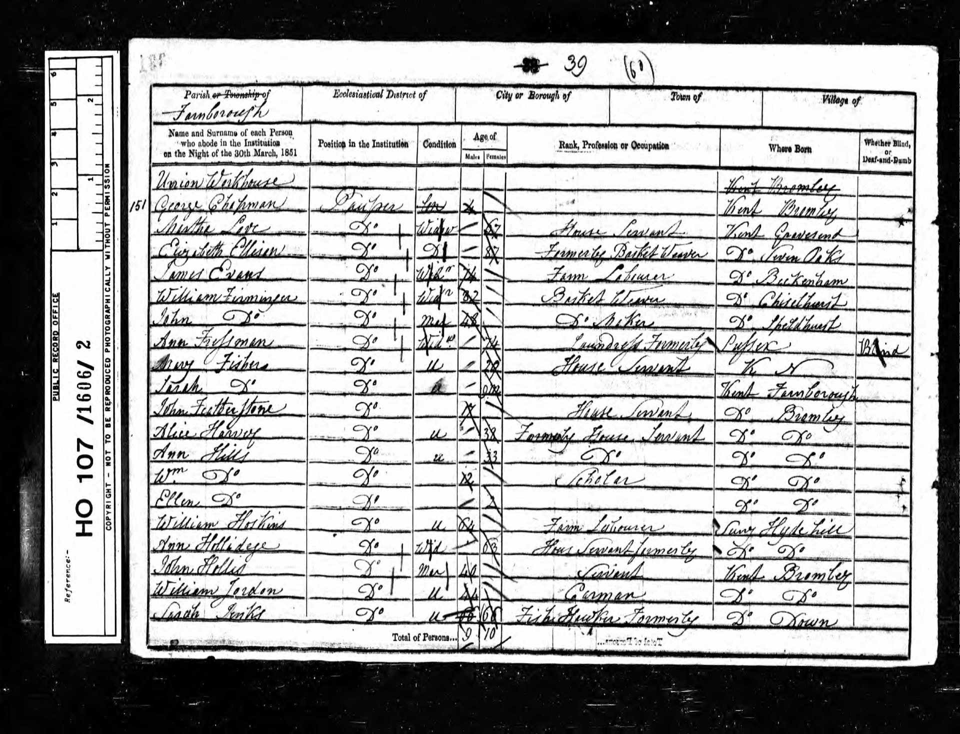 151 James Lewis Pauper 60 1791 Male Bromley, Kent, England