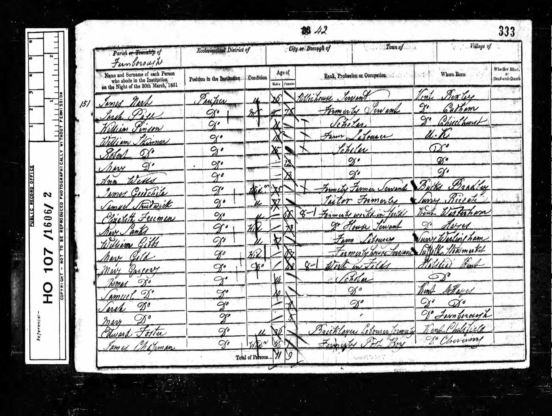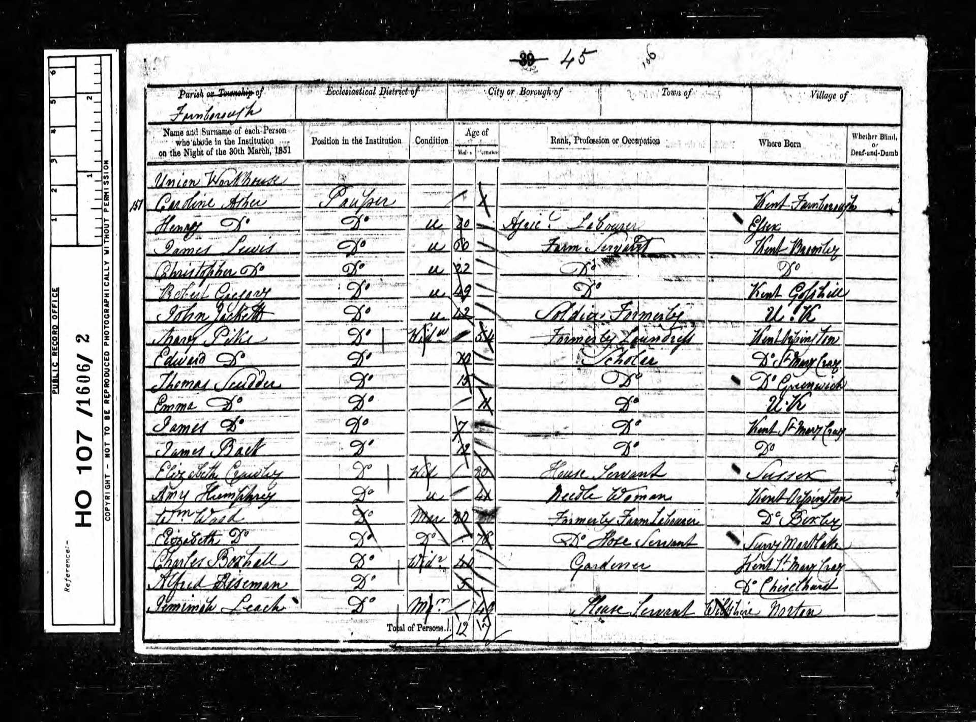 151 Maryann Vanspreenbury Pauper 1 1850 Female Chiselhurst, Kent, England