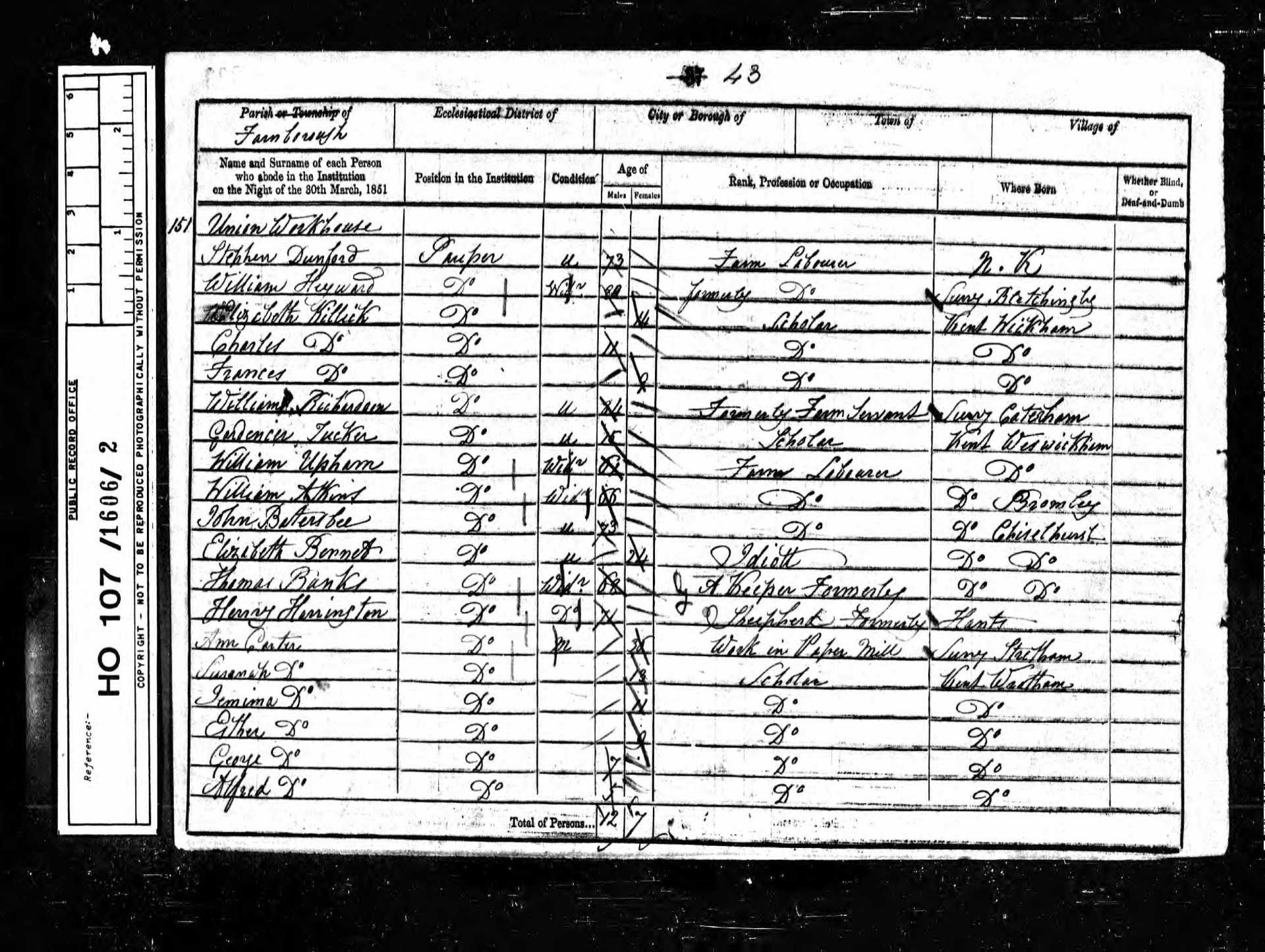 13 Mary Ann Newitt Wife 44 1807 Female Eynsford, Kent, England