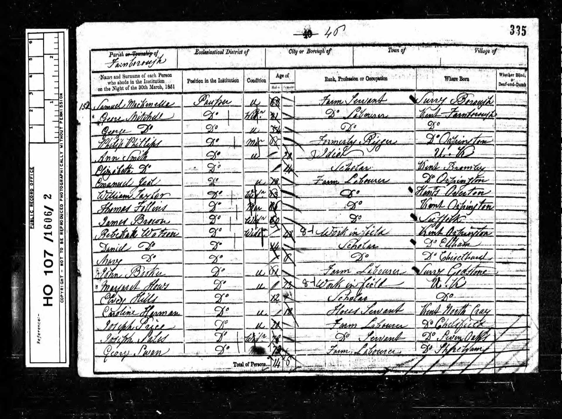 152 Gren Mitchell Pauper 31 1820 Male Farnborough, Kent, England