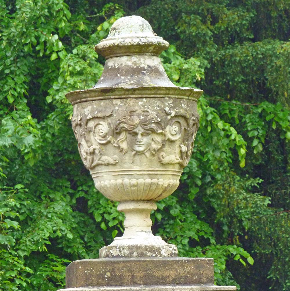 A detail of the gate pillar decoration can be seen with a Medusa head, although the reason for this is not known.