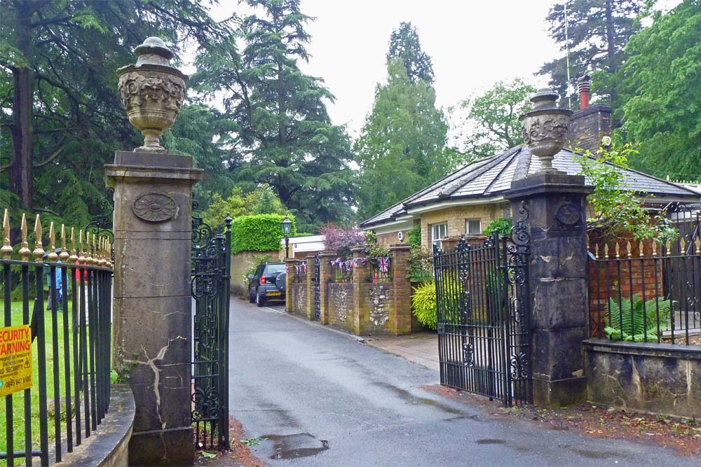We started at the main gate (which is not used by the general public today) and the lodge house seen in the picture below. In the 19th century, the drive continued across Shire Lane and joined Church Road directly below the church. Members of the Lubbock family were buried adjacent to the drive, apparently on unconsecrated ground. This gate was also the site of a serious carriage accident involving a member of the Lubbock family.