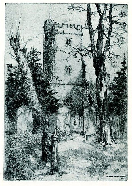 An external view of Bromley Parish Church which, apart from the tower, was totally destroyed by a 550lb bomb during the night of 16-17th April 1941. An 18 year old fire watcher in the tower was killed, one of 1200 people killed in raids on London that night. Nearby Church House was razed to the ground with just the ornamental gardens and balustrades left today.