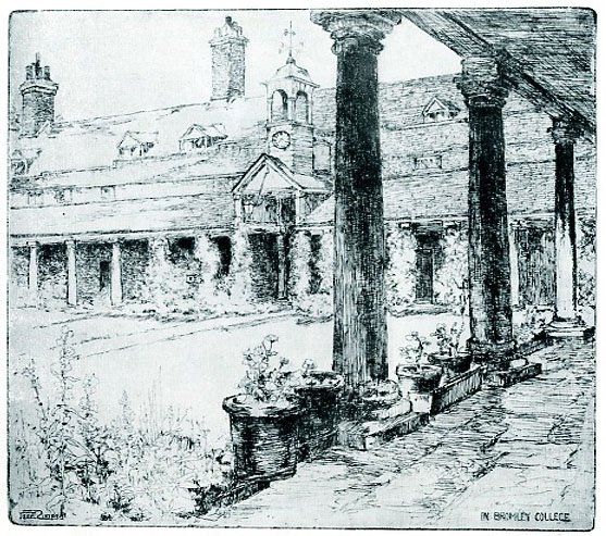 This view of the central quadrangle at Bromley College in London Road looking towards the Chapel is little changed today.