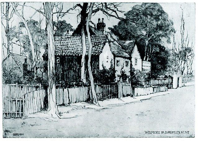 The final drawing in the collection is, depending on the date, either No. 59 or more likely No.145 Widmore Road, which number it was given from 1903. The premises of coach builder Fredrick Dean can be seen on the right and the building seems to have been used by a variety of other businesses over the years. Mr. Dean was there for a considerable period but the War may have adversely affected his business which closed in 1914. The site was later taken over by KJ Motors and part of it is now a BP garage. The Siimpson family were living a few houses to the right, just at the top of the hill down to Widmore Green.