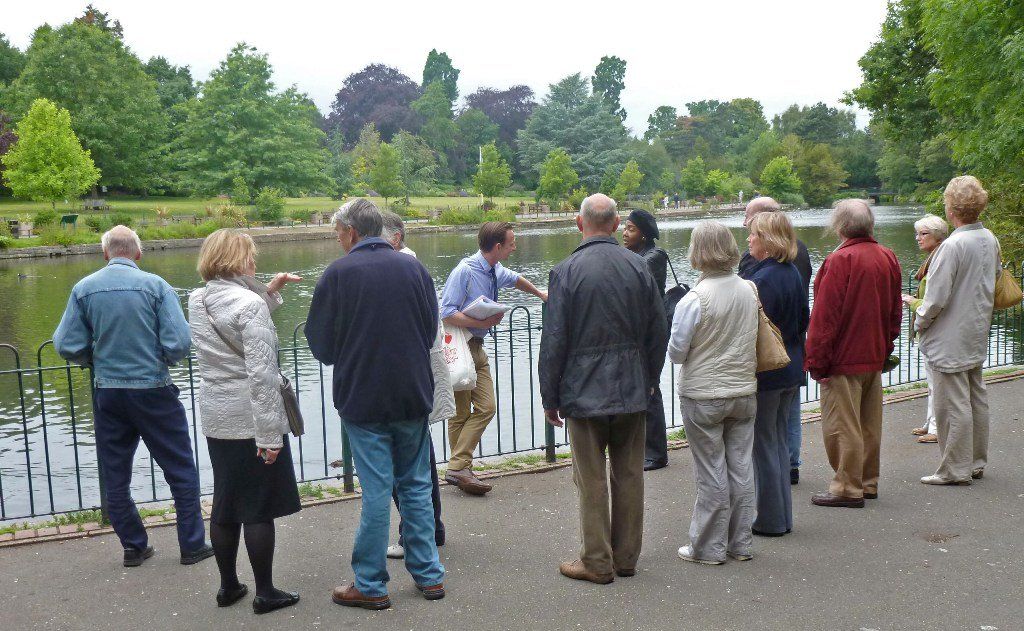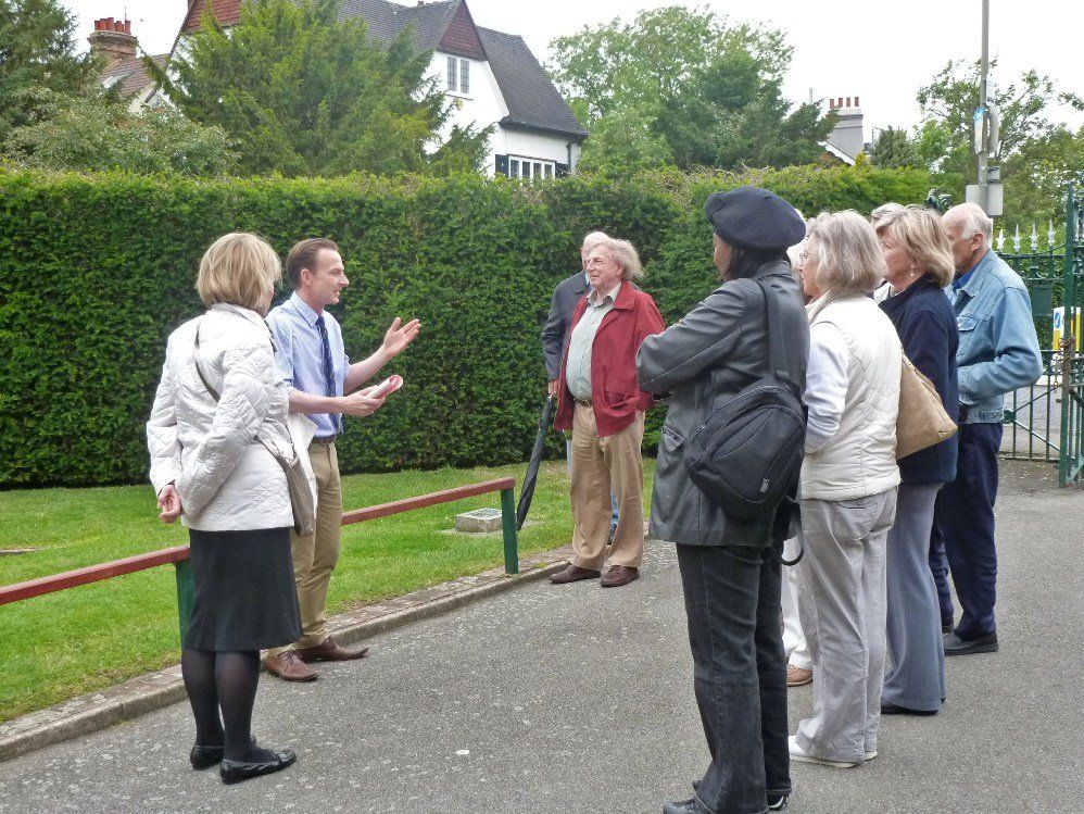 We met by the northern entrance to the Park where, on the ground, can be seen a plaque commemorating the purchase of the Park in 1913, or more correctly its opening as it was actually bought in 1911 with the aid of a government grant. In the background, can be seen "Kelsey Corner", the house built by Hooper in 1910. He lived here until his death in 1938 having previously moved from his house in Wickham Road to Albemarle Road.