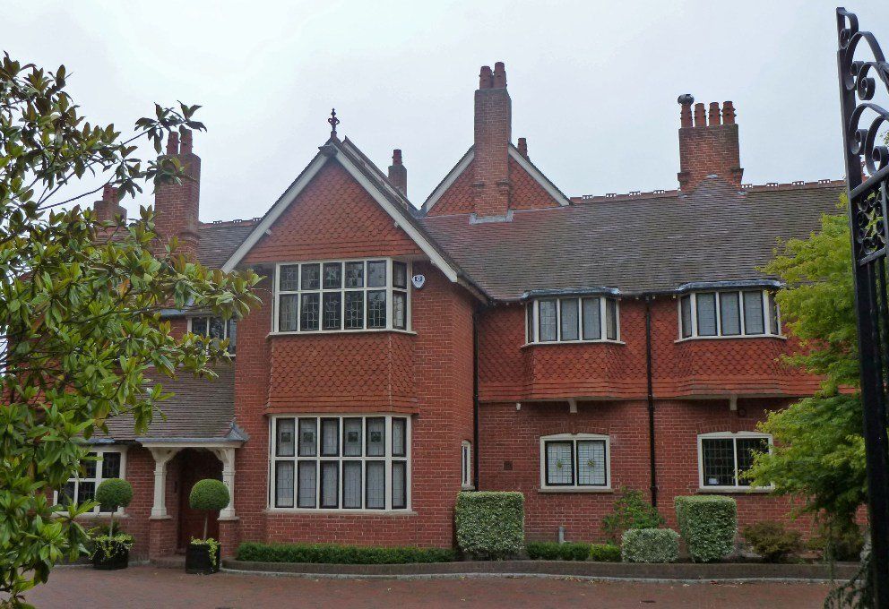 Although it appears older, its age is given away by the grey industrial bricks adjacent to the ground floor windows. However, it has a nicely carved oak porch!