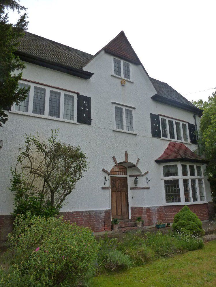 Largely unaltered (although the blue stucco at No. 72 is not original), it is interesting to examine the houses in detail because initial impressions of basic patterns are replaced by admiration for the details they incorporate. No. 74 below is asymmetrical with an excellent composition of tile hanging, elegant chimney stacks and an ornate timber porch. This property, although beautifully maintained, is not listed.