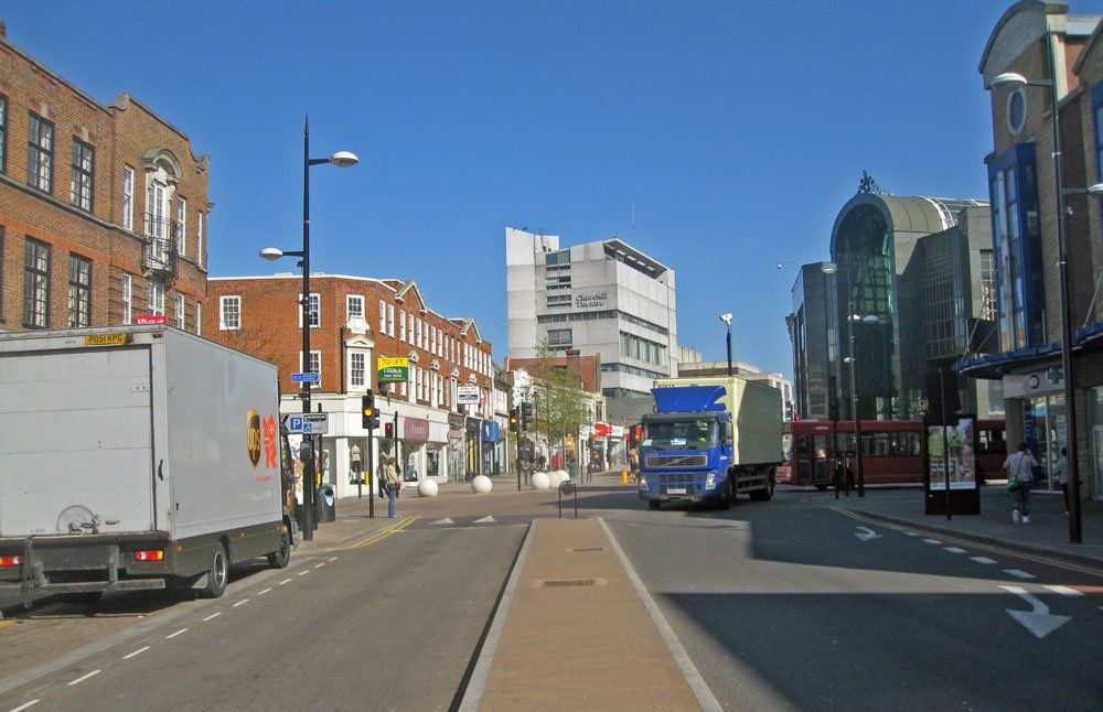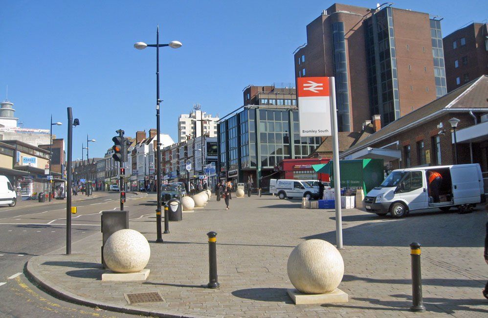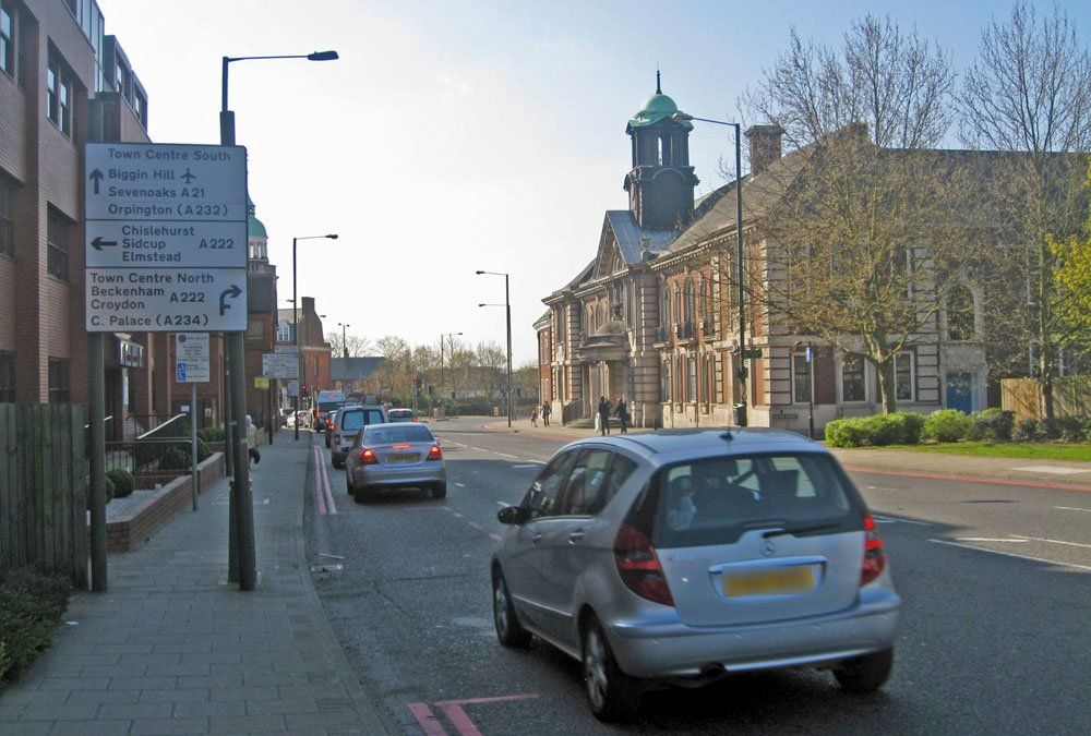 Considerable change has occurred here with the replacement Central Library in the middle and the entrance to the Glades replacing Dolcis. Despite the route display, the 227 is heading away from Bromley Garage towards its normal route from Chislehurst to Penge. No longer able to proceed straight up the High Street in 2010, Elmfield Road is the only route through the town and restricted to buses and taxis. The change to the central reservation is all too obvious.