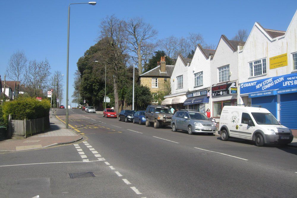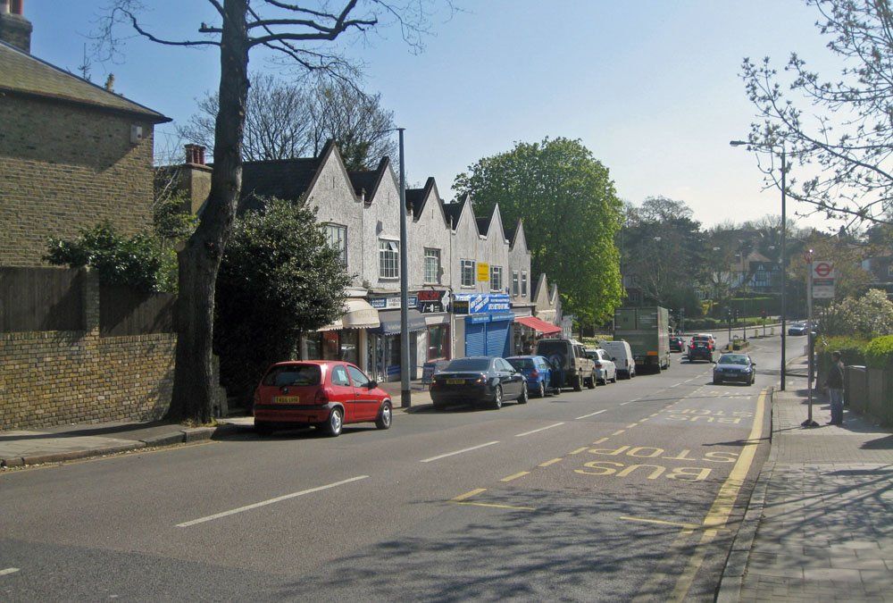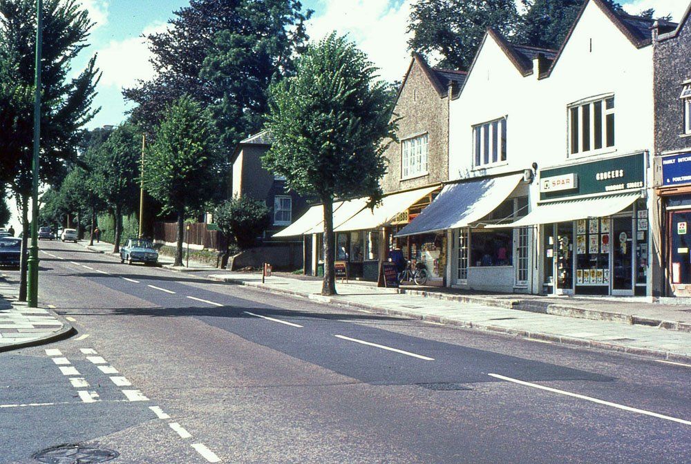 The final picture in this section looks down the hill to Widmore Geeen, again little changed apart from a different type of bus stop, the sad loss of street trees and, although not obvious from this angle, the felling of the large oak tree at the heart of the Green in 2009. The tree on the left seems to have become rather mishapen over the years.