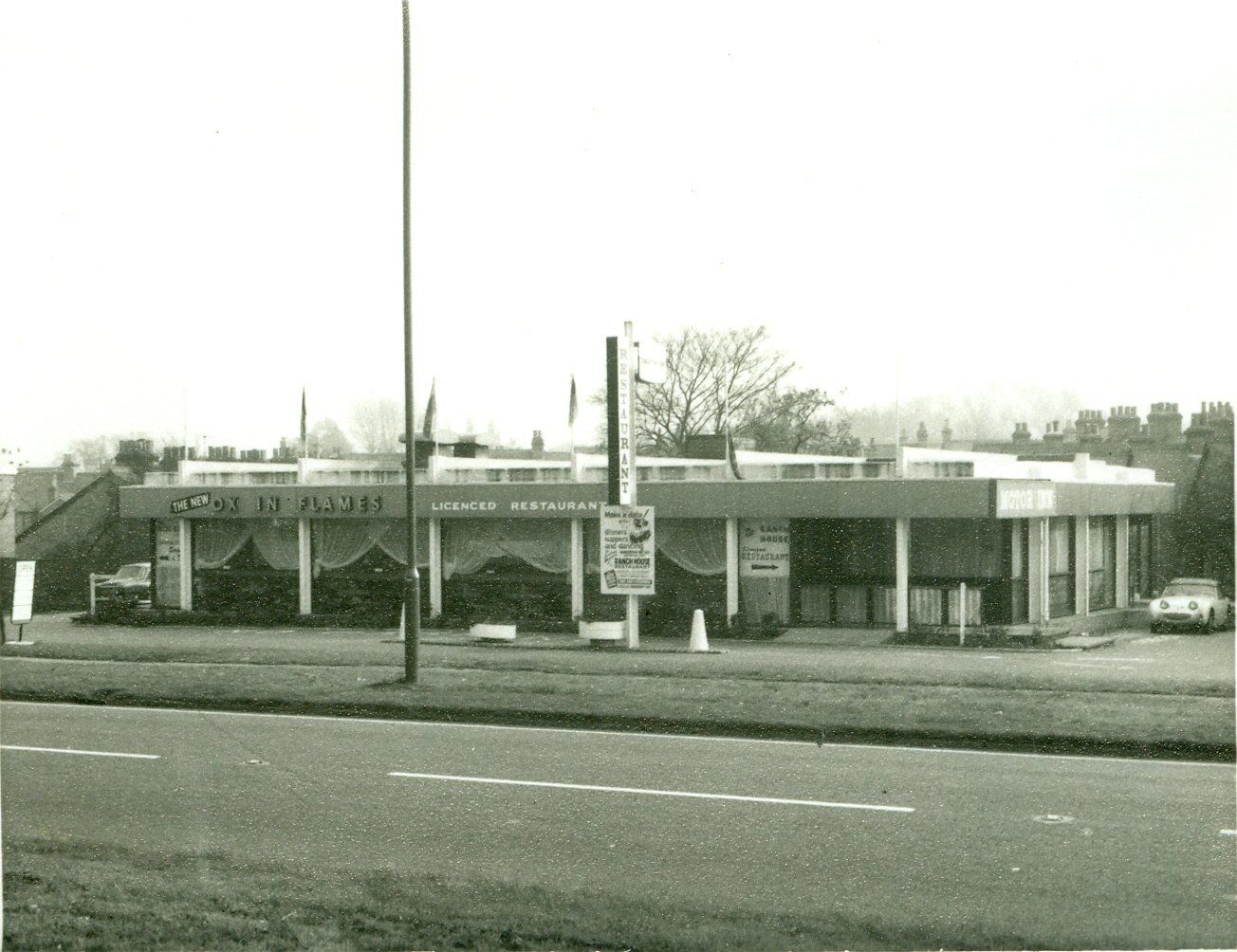 The area's first main road "Drive-In" restarurant, the Ox-in-Flames in 1965. It opened on 16th September 1960.