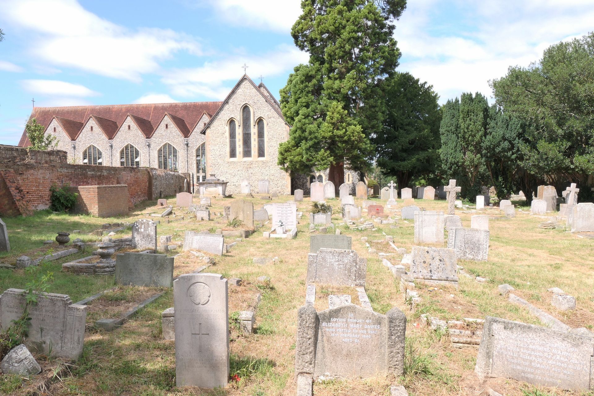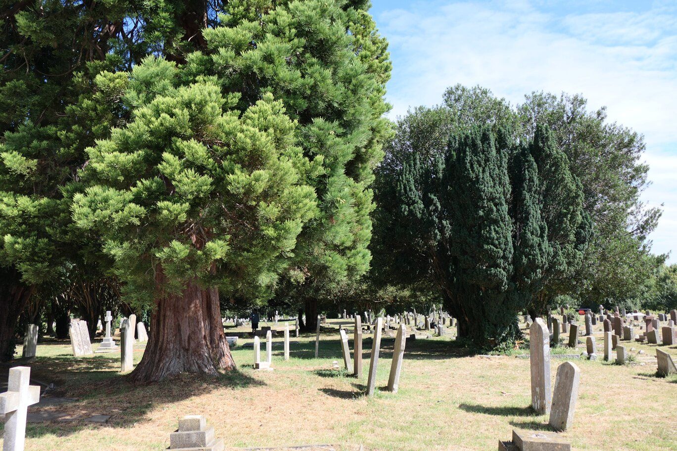 A general view of the graveyard looking north showing the some of the many splendid old trees.