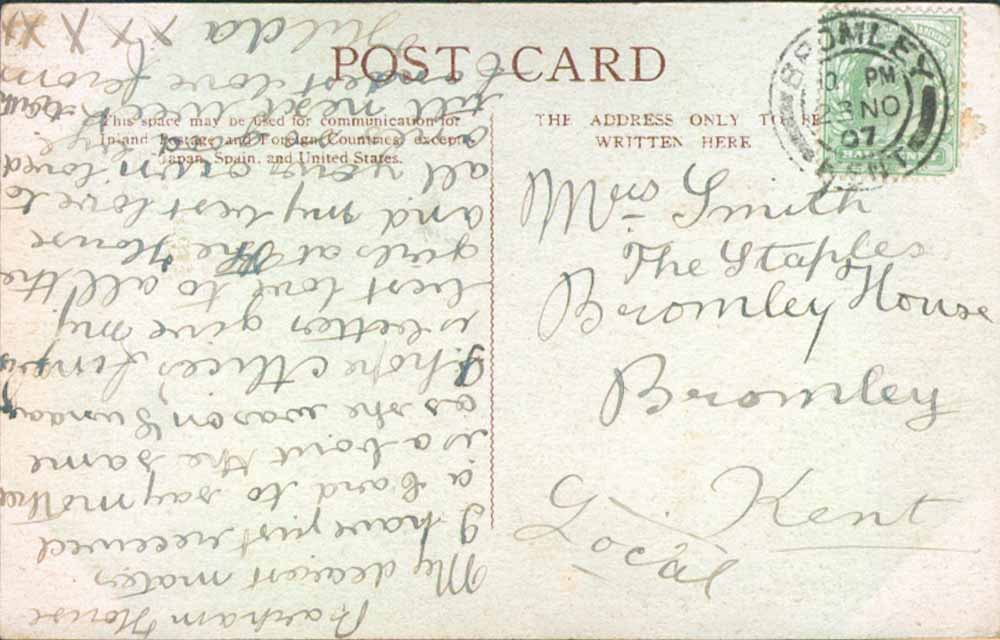 Not clear why it was posted in Sevenoaks using a Swanley picture. Probably from Sidney.