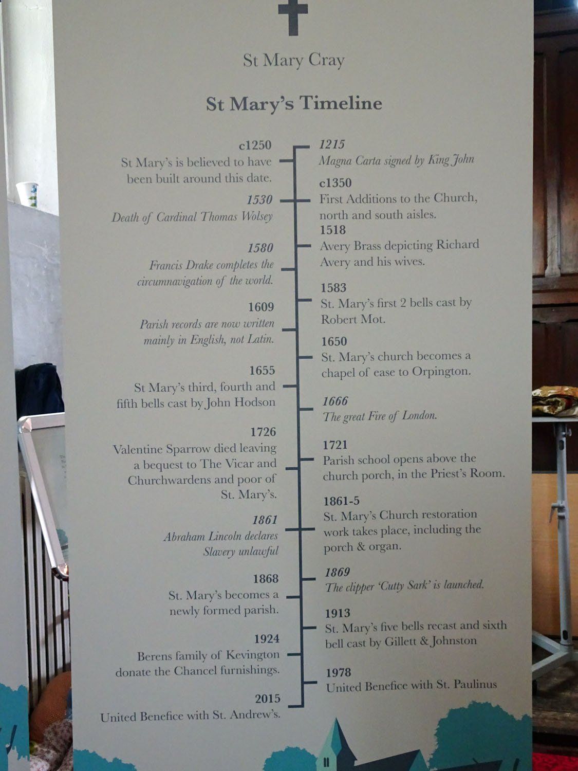 A timeline of the church's history.