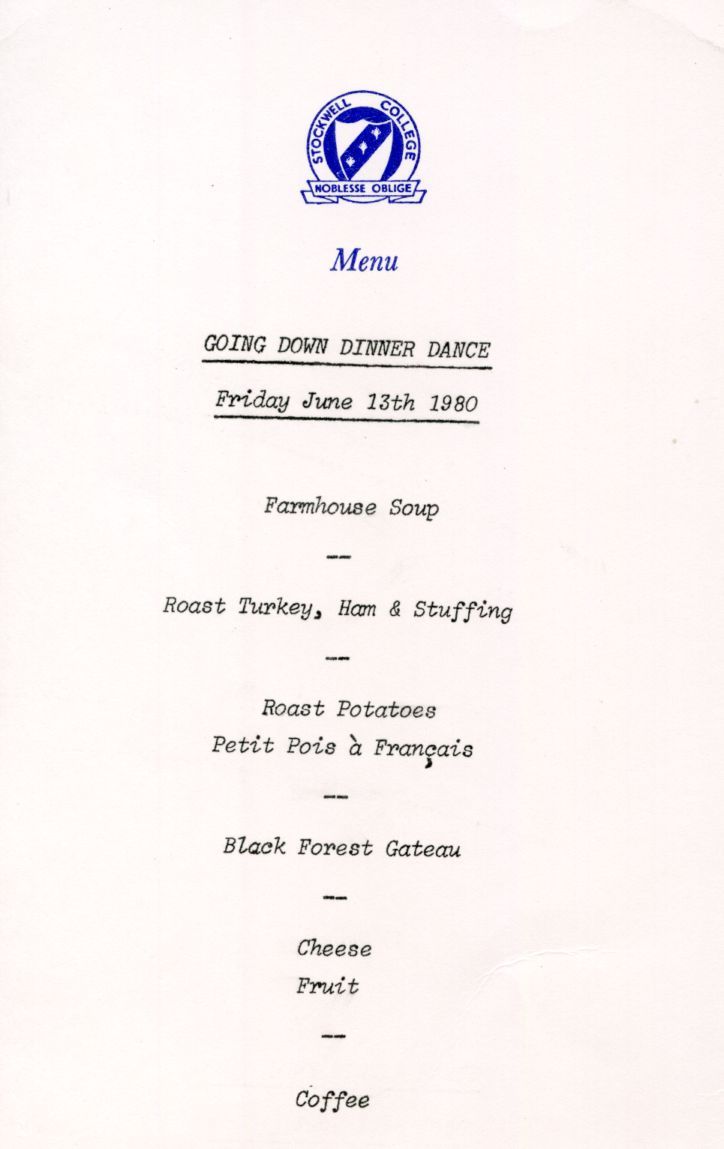 The menu for the last official meal at the College.